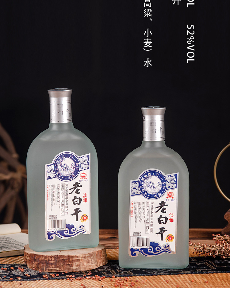 衡水名物老白乾濃い味の酒 52 度エレガントなつや消しフラットボトル 500 ミリリットル穀物酒卸売