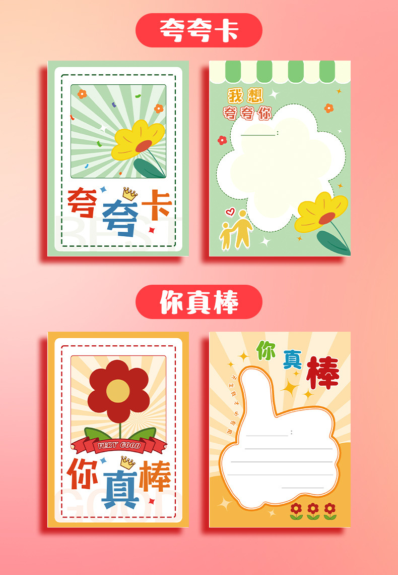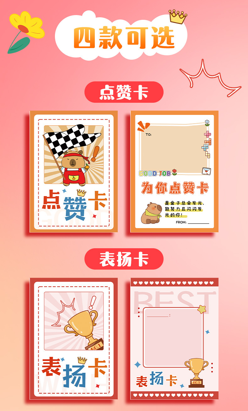 班级奖励夸夸卡表扬小红花卡片学习目标卡纸夸奖孩子纸条教室文化