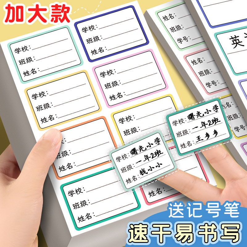 小学生用お名前シール、手書きお名前シール、破れにくいラベルシール、学校名、クラス番号、学生番号シール