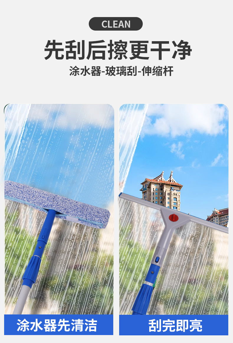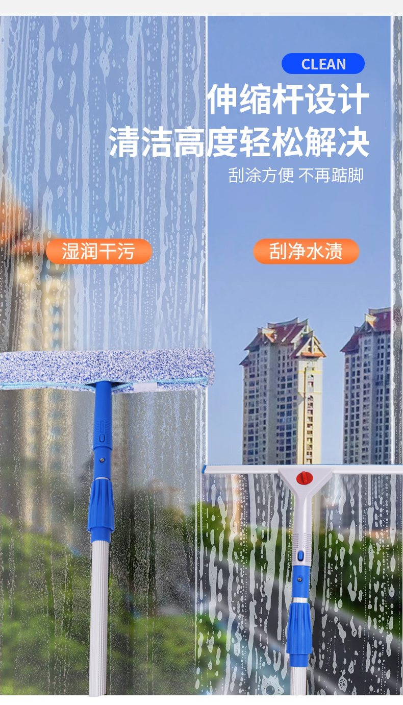 擦玻璃神器家用保洁用玻璃刮刀地板刮水器玻璃刮伸缩杆擦窗器