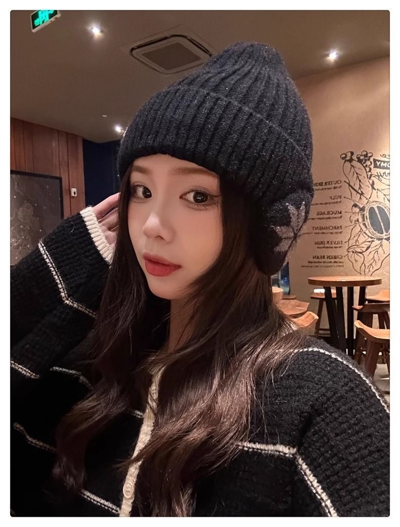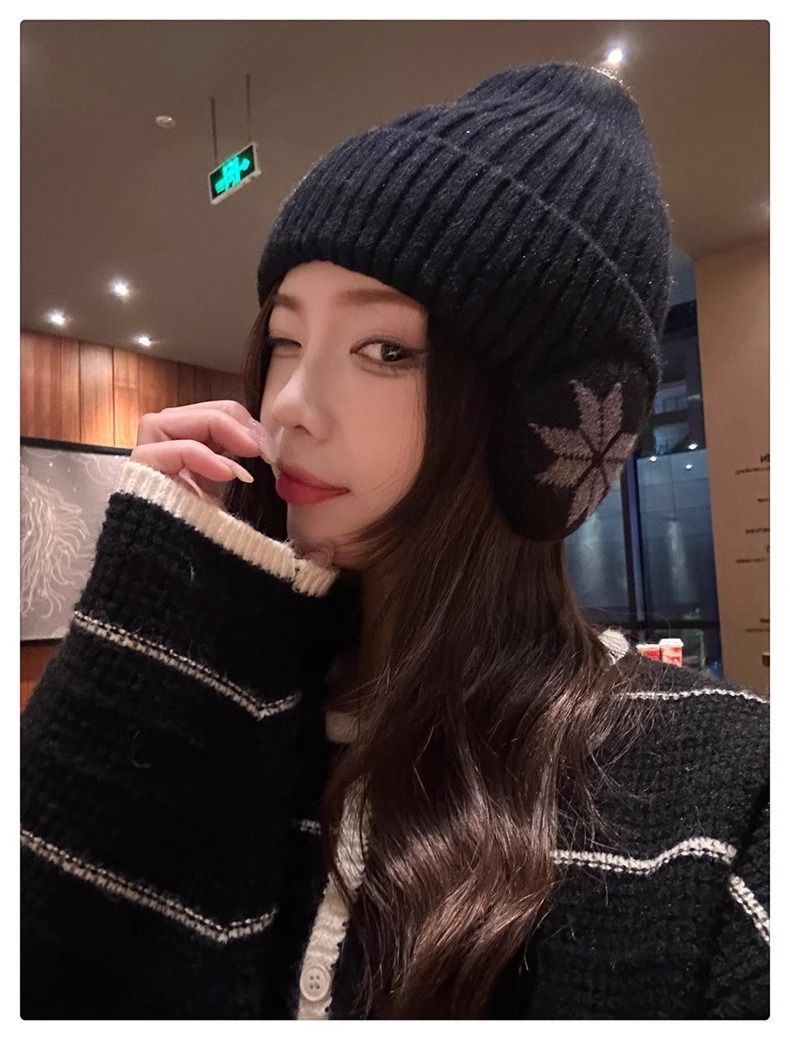 可爱小狗刺绣针织秋冬保暖加厚显脸新款秋冬季护耳毛线帽百搭帽子