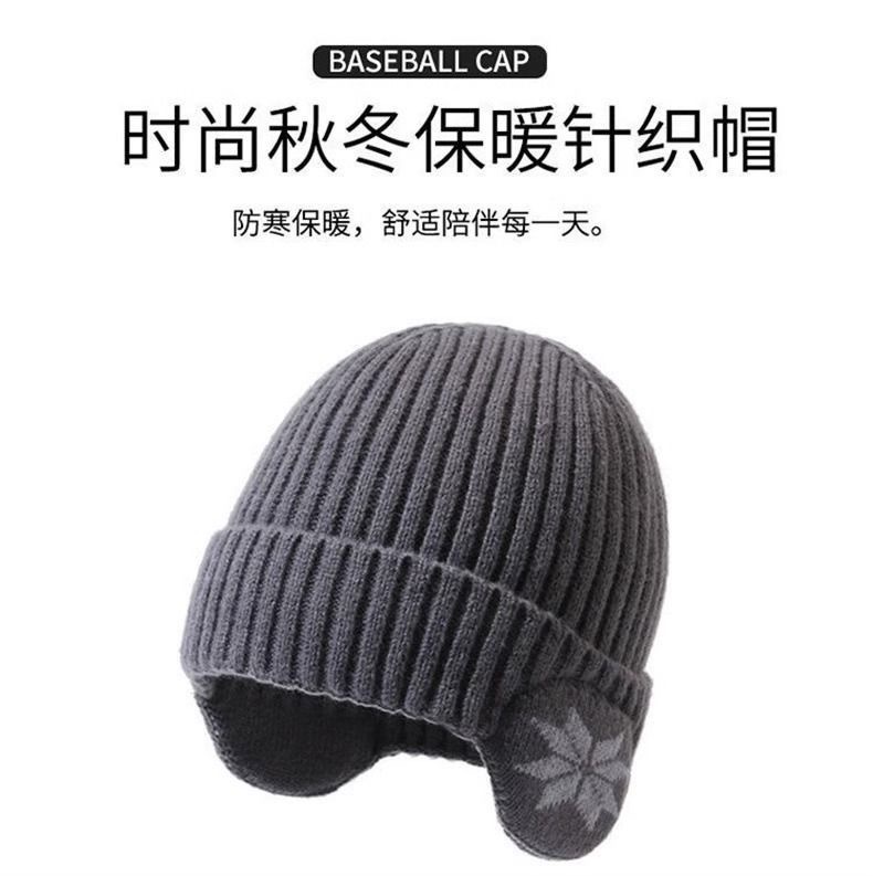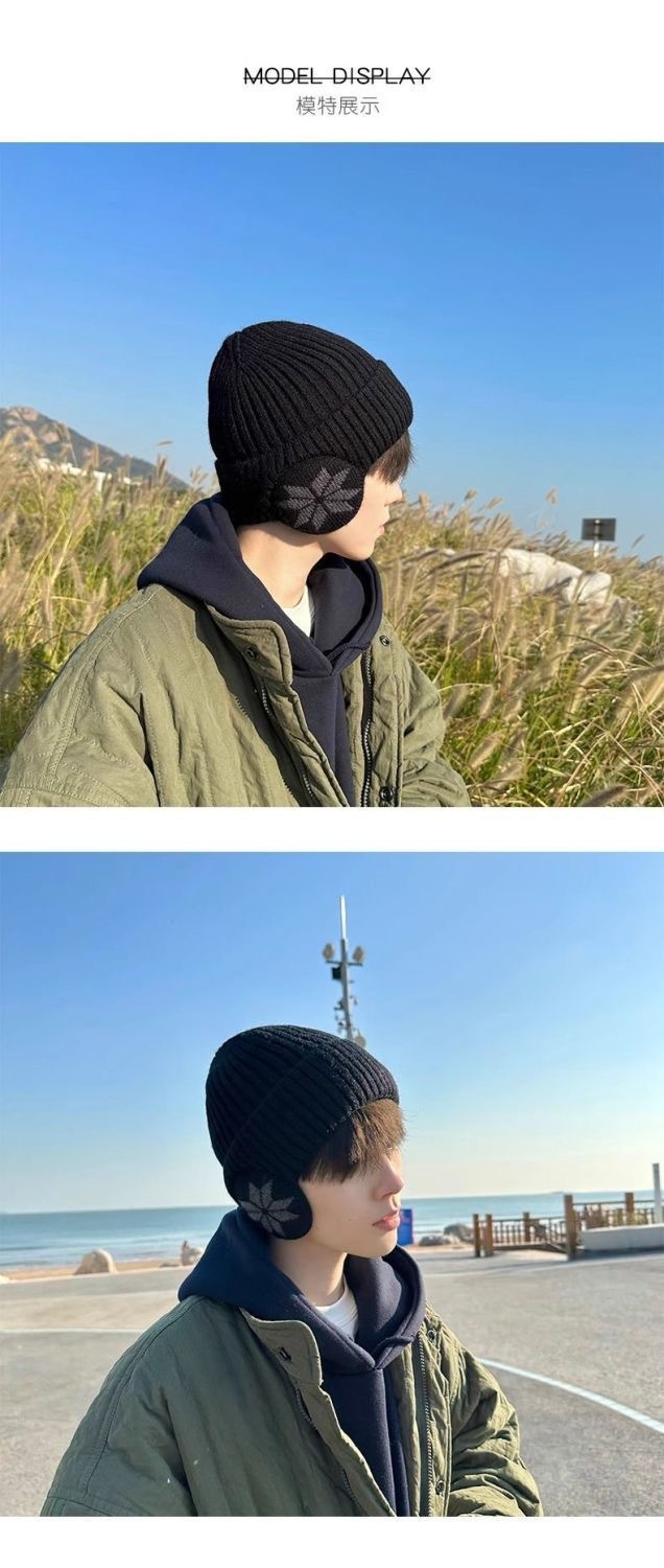 冬季男保暖加绒大帽檐针织帽户外运动加厚滑雪骑车护耳防寒毛线帽