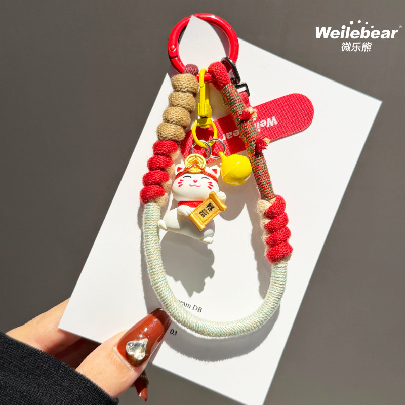 暴富招财猫手机挂绳手绳编织腕带卡通挂件钥匙扣挂饰创意手提挂链