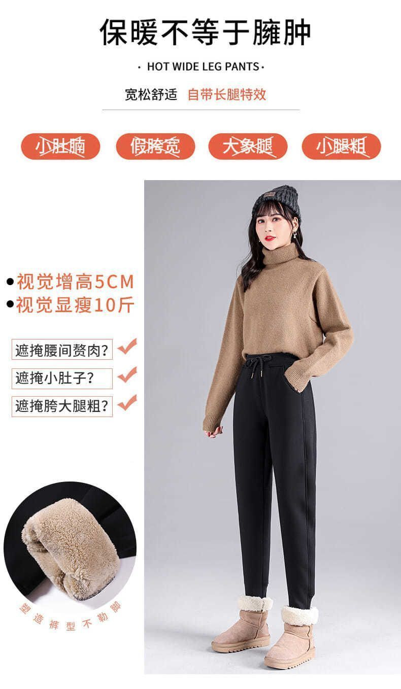 (北极绒)加绒加厚运动裤女冬季宽松卫裤束脚女裤外穿棉裤秋冬女