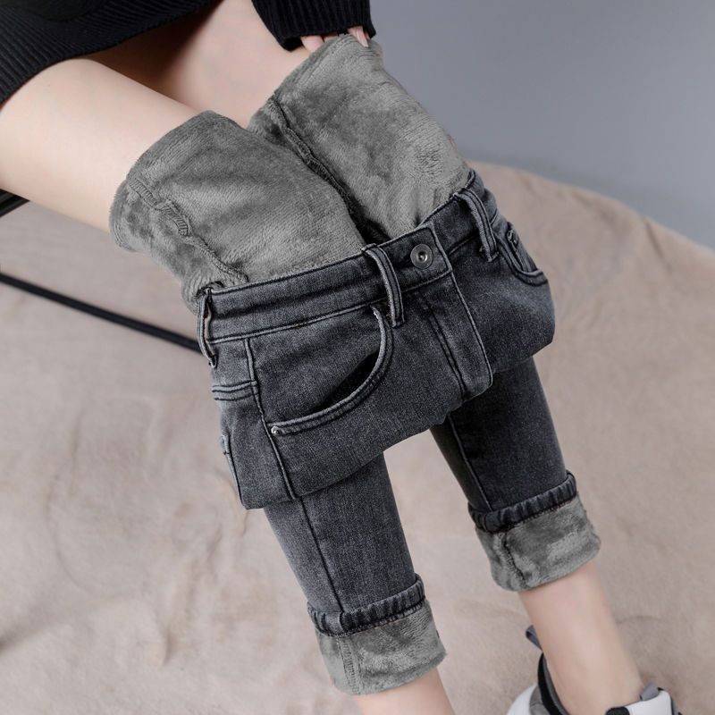 牛仔裤女春季2025新款高腰显瘦秋冬加绒加厚紧身弹力铅笔小脚裤子