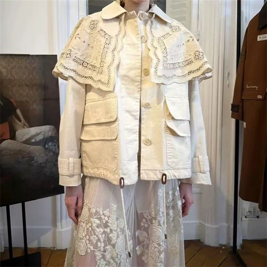 法式小众 2025早秋复古镂空刺绣花卉翻领短款长袖衬衫松紧腰半裙套装