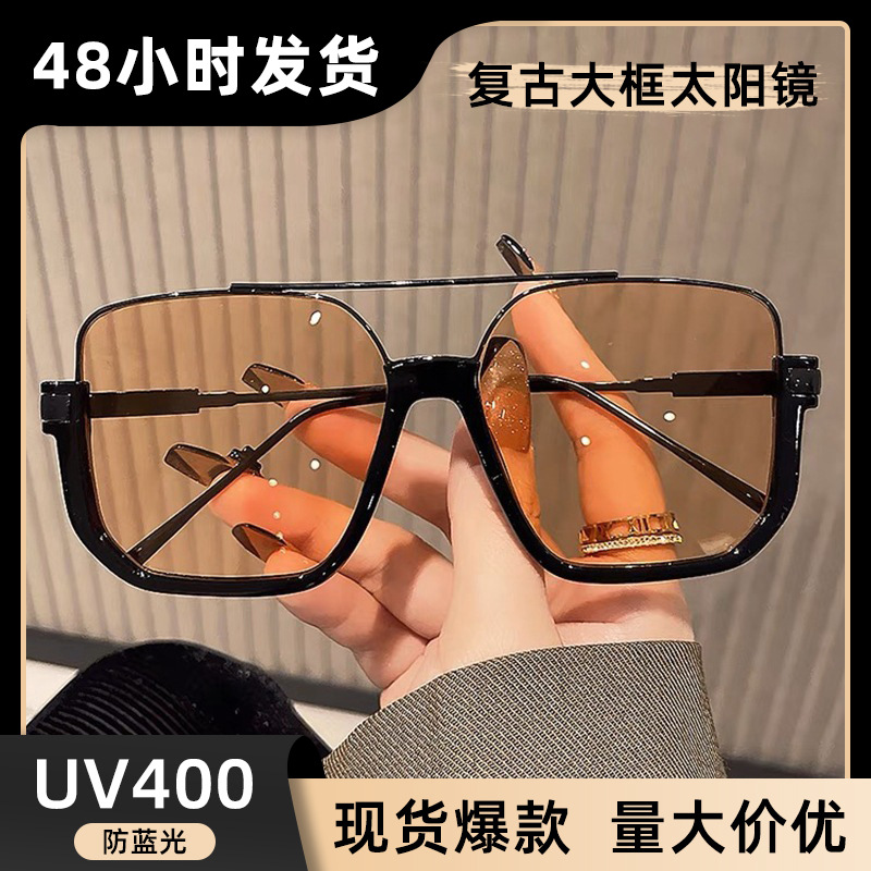 新品透明レトロ男女通用高級高級大枠メガネサングラス茶色黒色感ダブルビームサングラス
