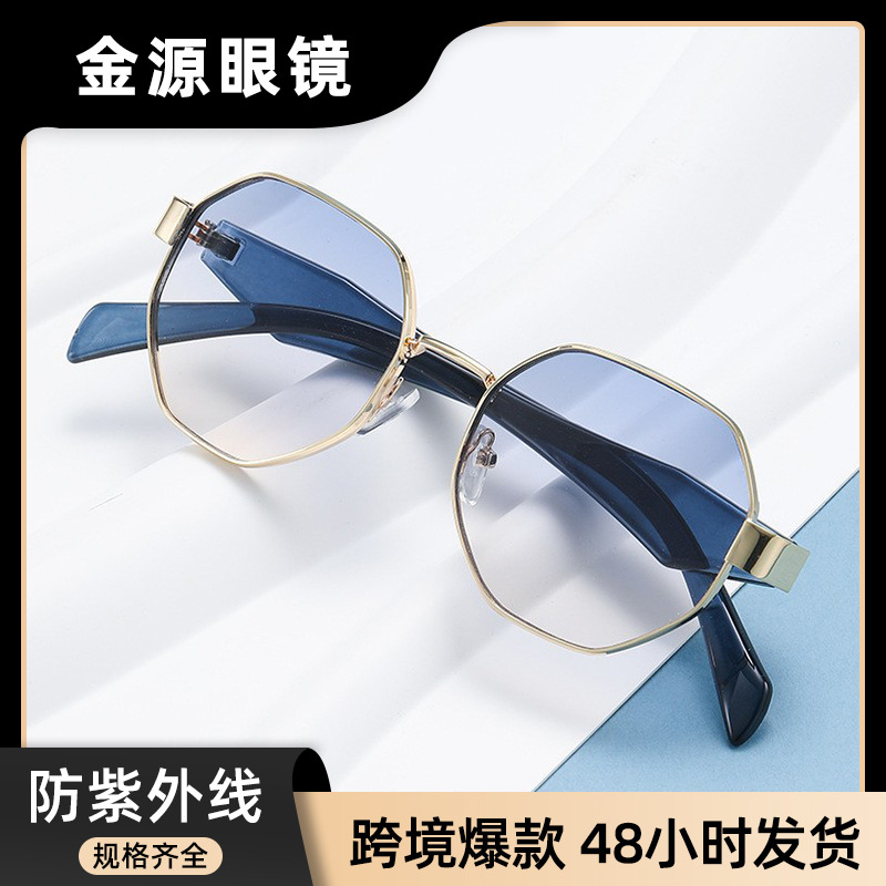クロスボーダーレトロコントラストカラー抗青色光メガネフレームキャットアイポリゴン女性のトレンディなパーソナライズされたメガネフレームヨーロッパとアメリカのフラットメガネ