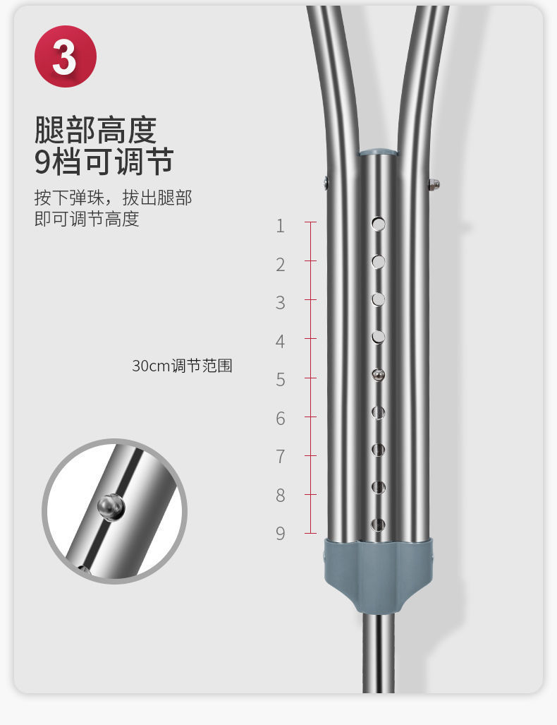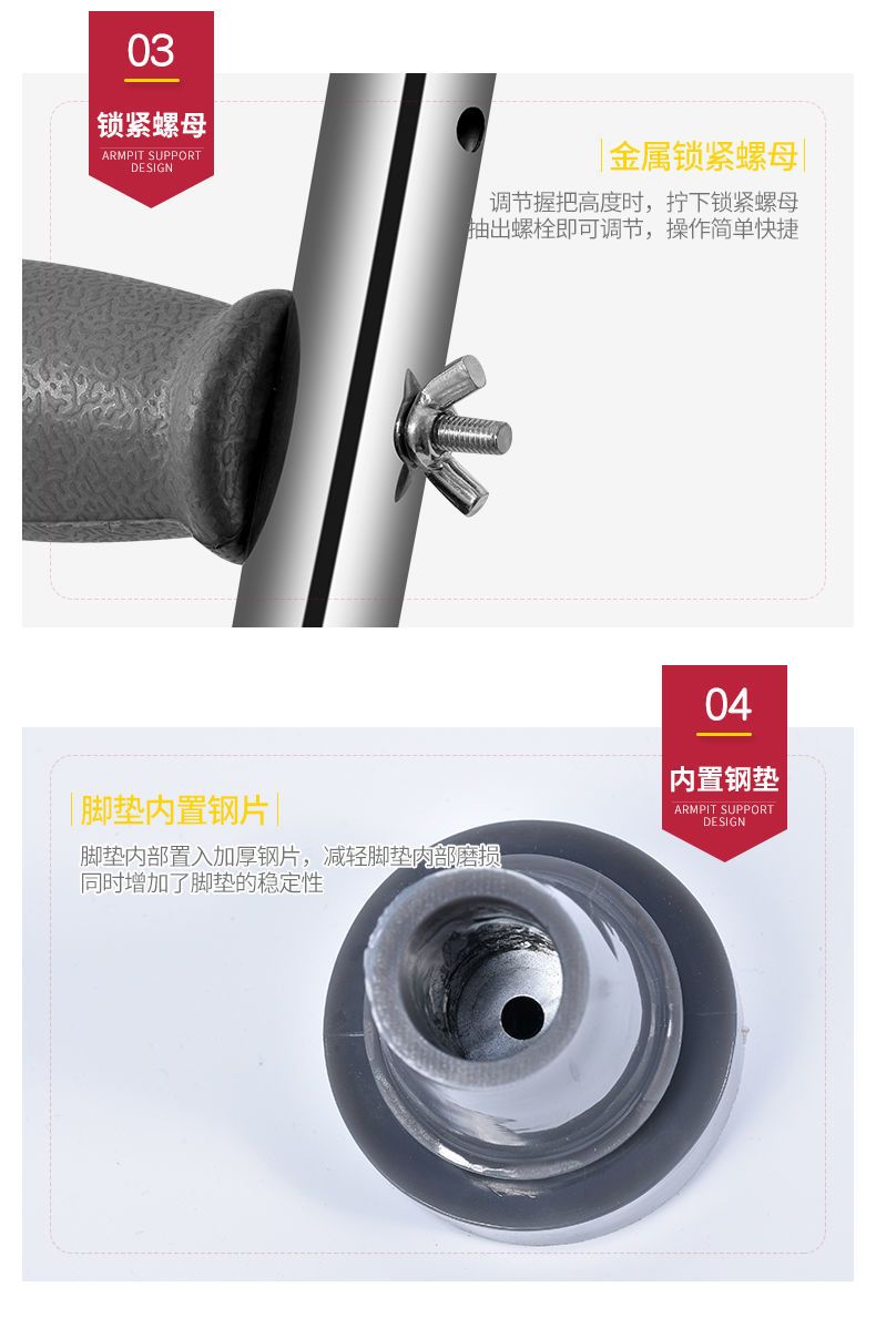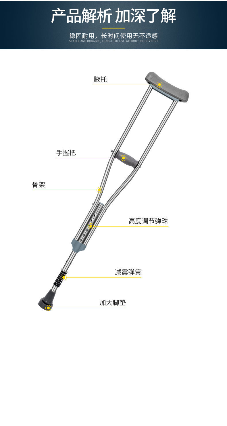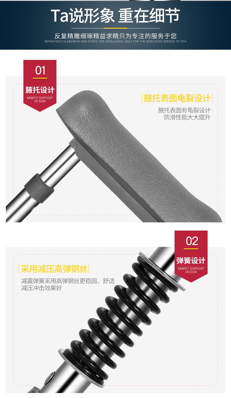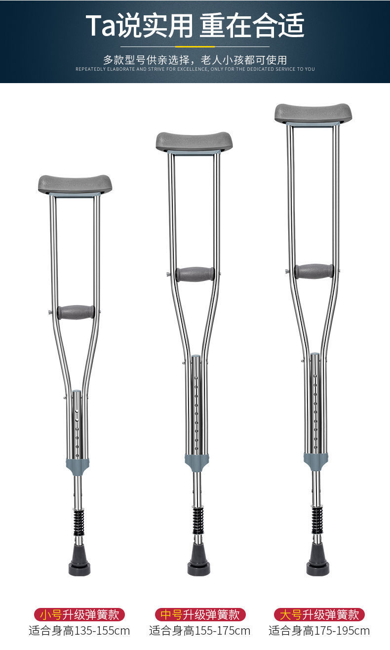 医用腋双拐防滑垫骨残疾人锈钢弹簧老年人拐杖助行轻便行走