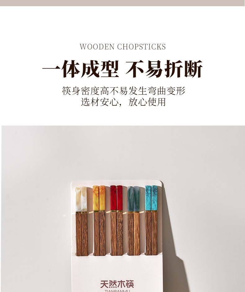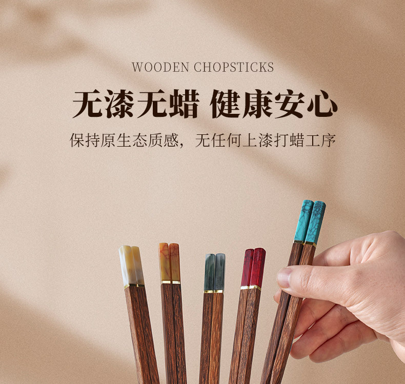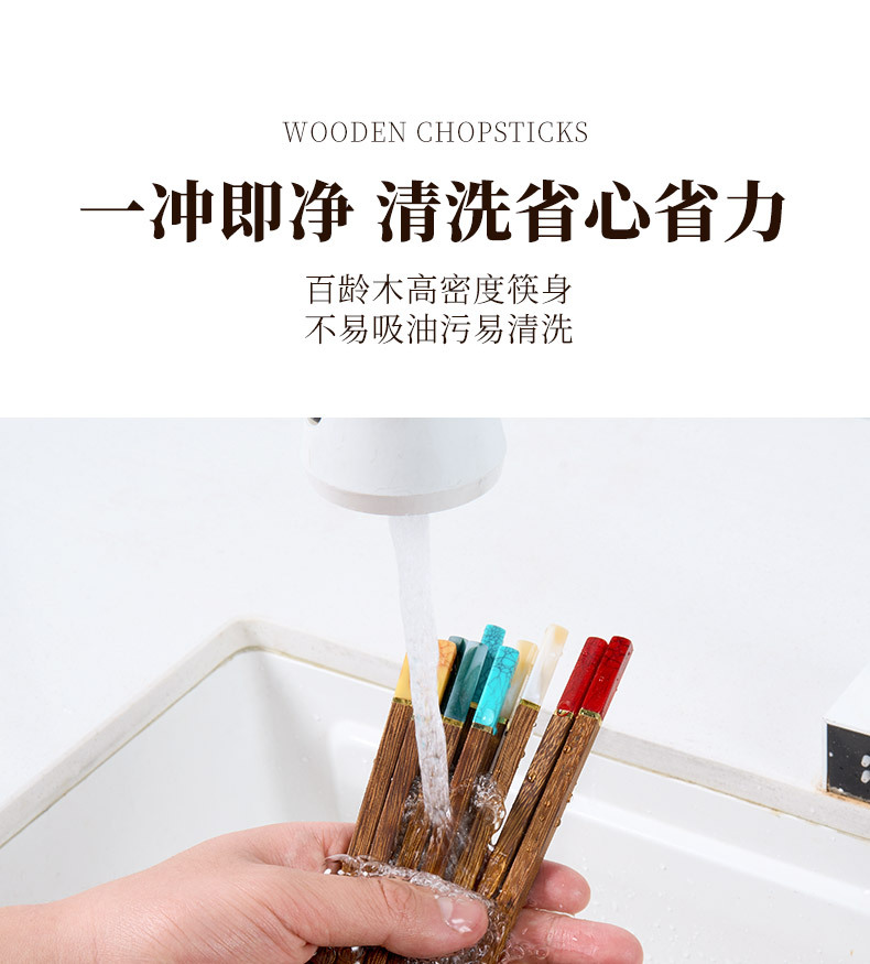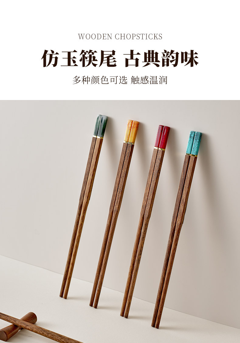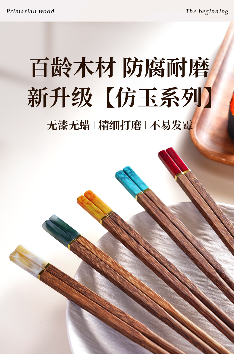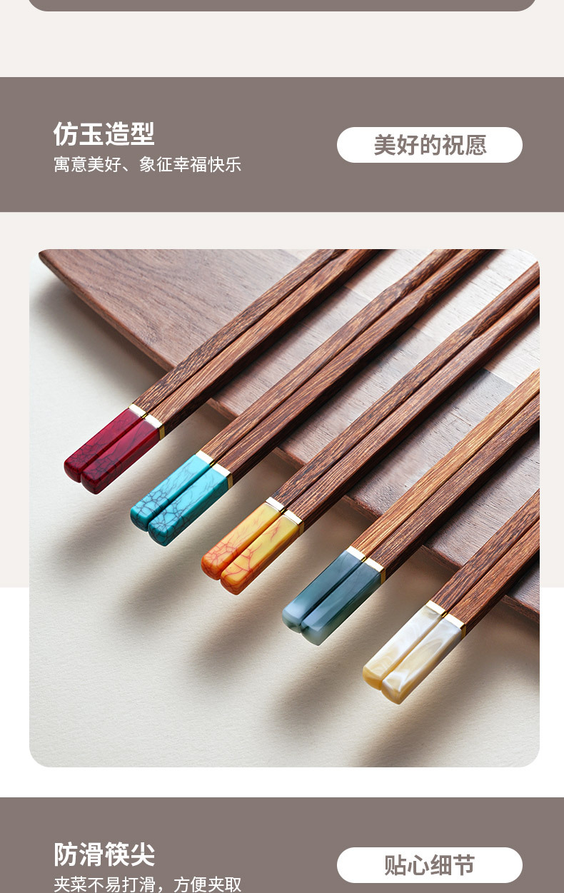 中式仿玉石六色鸡翅木筷子家用无漆无蜡高档抗菌防霉筷家庭分餐筷