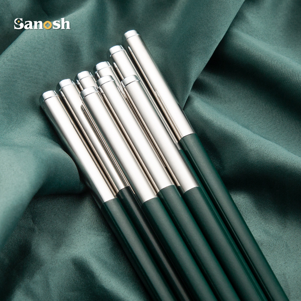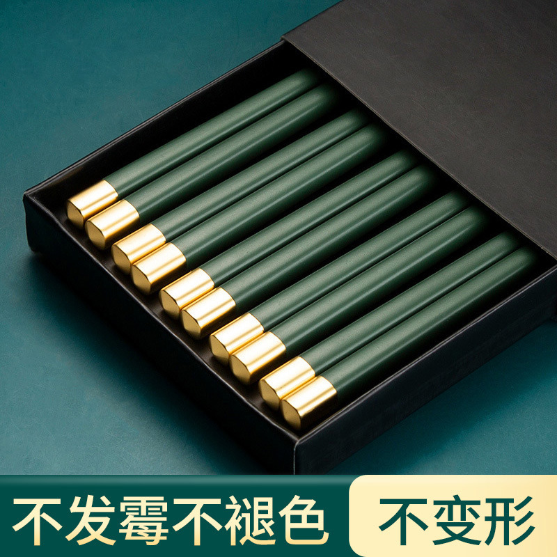 双十汇304ステンレス高級清新家庭用箸耐高温滑り止め北欧グリーンホテル軽豪華合金箸