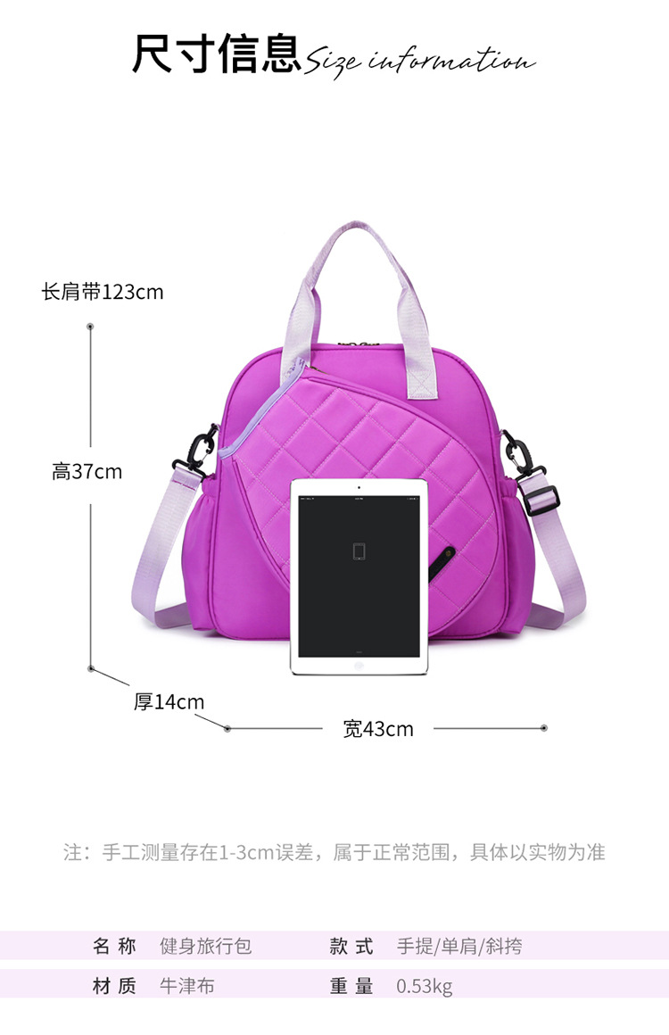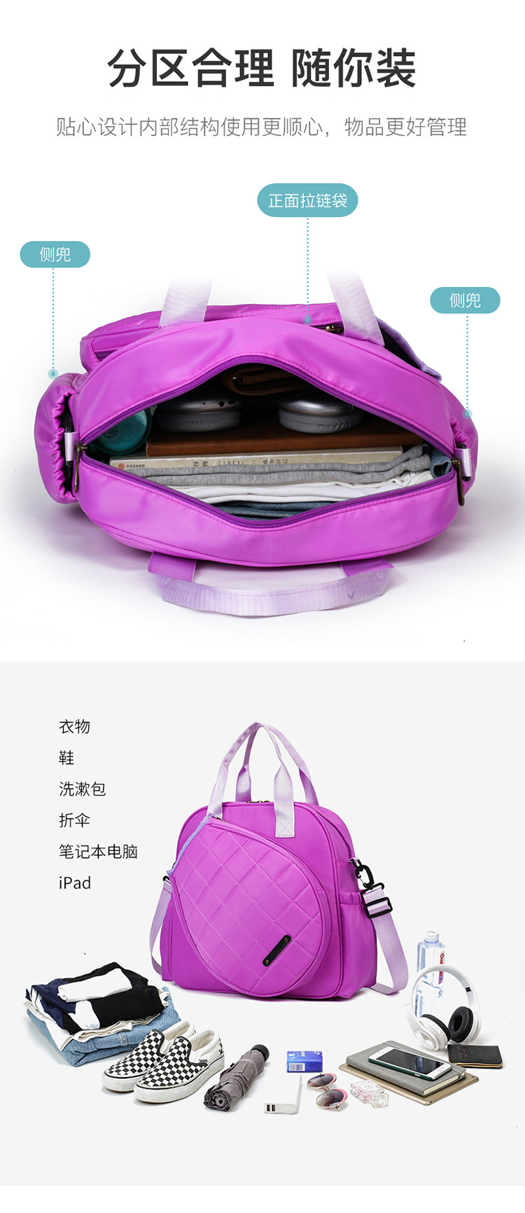 户外羽毛球网球拍运动包女大容量短途出差旅行包牛津布手提健身包