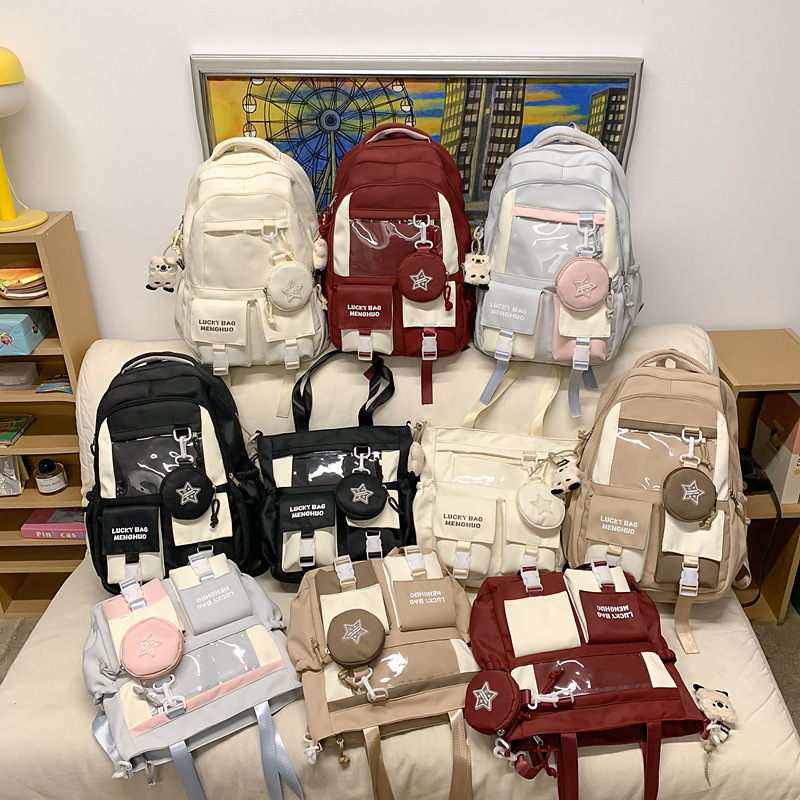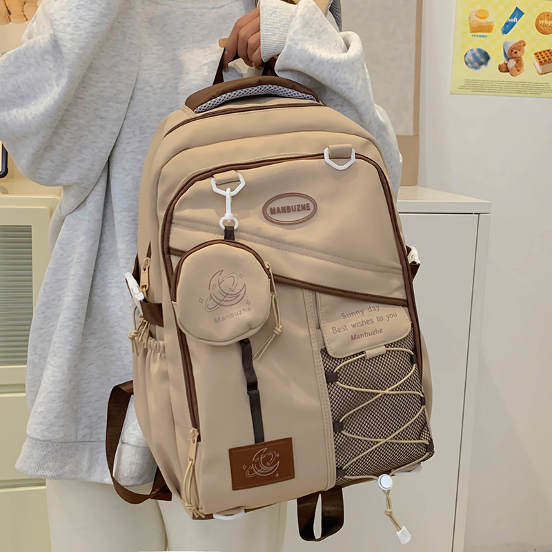 新しい韓国風シンプルで多用途なトラベルバックパック、大学生用スクールバッグ、インスタ映えする配色のキャンパスバックパック、軽量