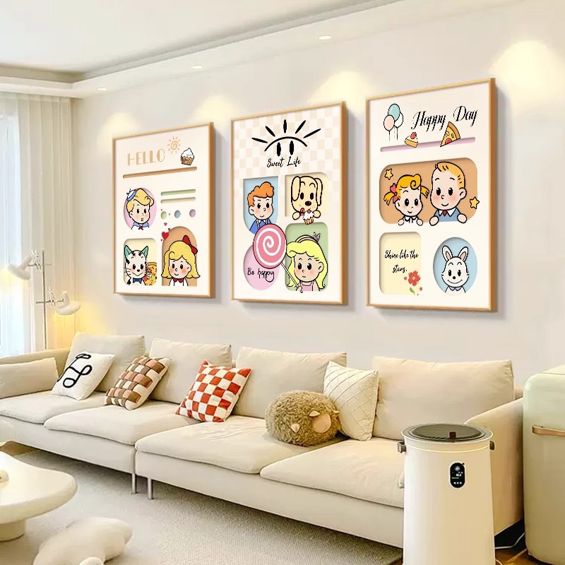ドーパミン軟装クリーム風客間装飾画アニメソファー背景壁掛け画かわいい寝室組み合わせ壁画