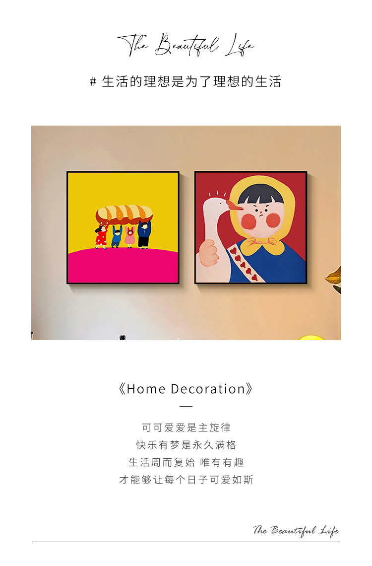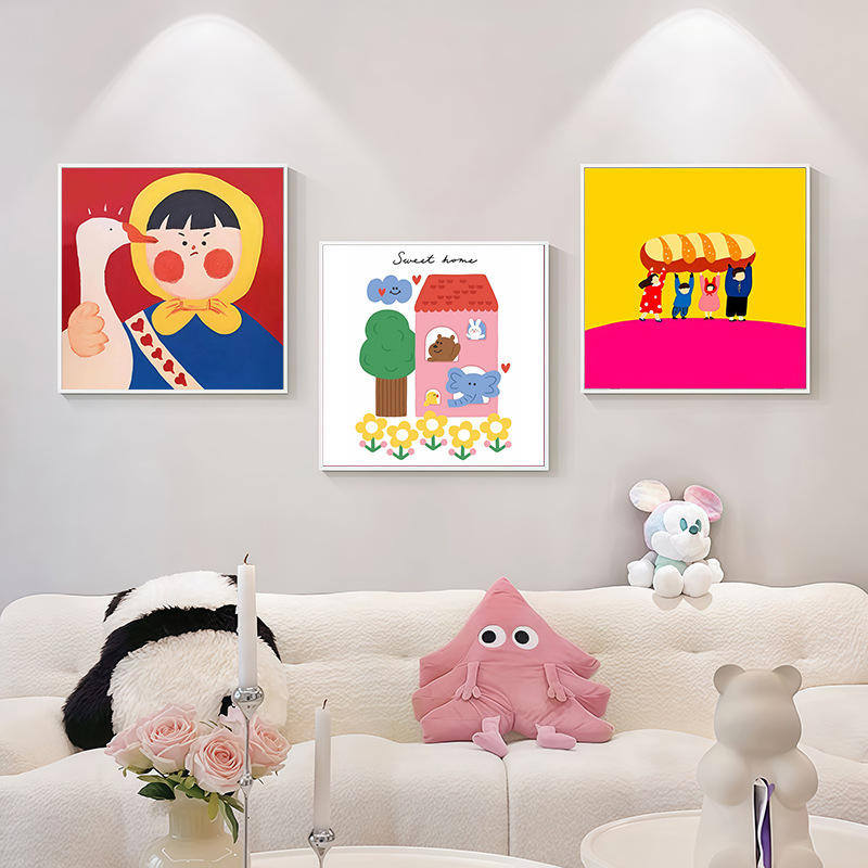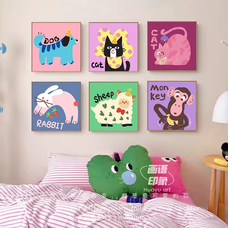 多巴胺儿童房卧室床头画现代简约客厅装饰画样板间主题房卡通壁画