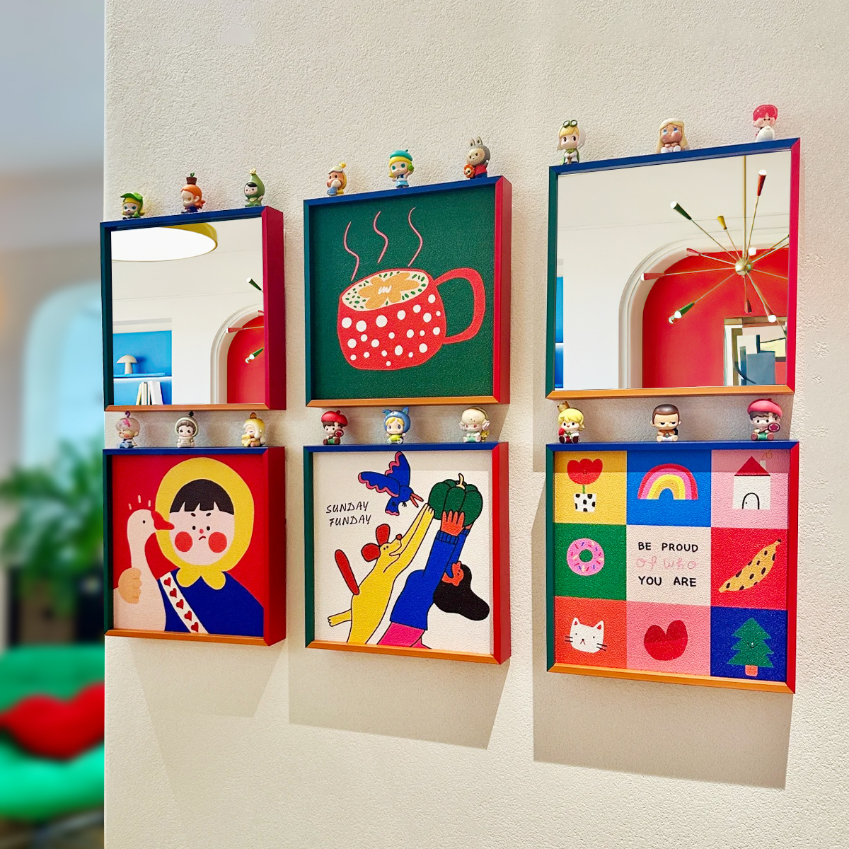ins多巴胺入户玄关装饰画镜子画客厅沙发背景墙小众艺术卡通挂画