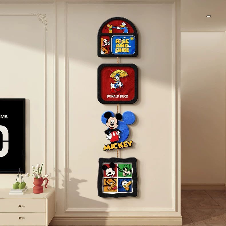 多巴胺电视背景墙装饰画米奇卡通动漫玄关挂画创意走廊过道墙壁画