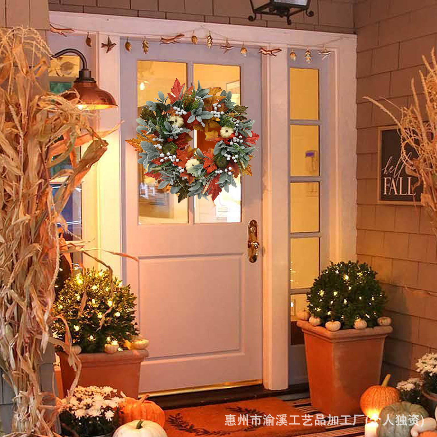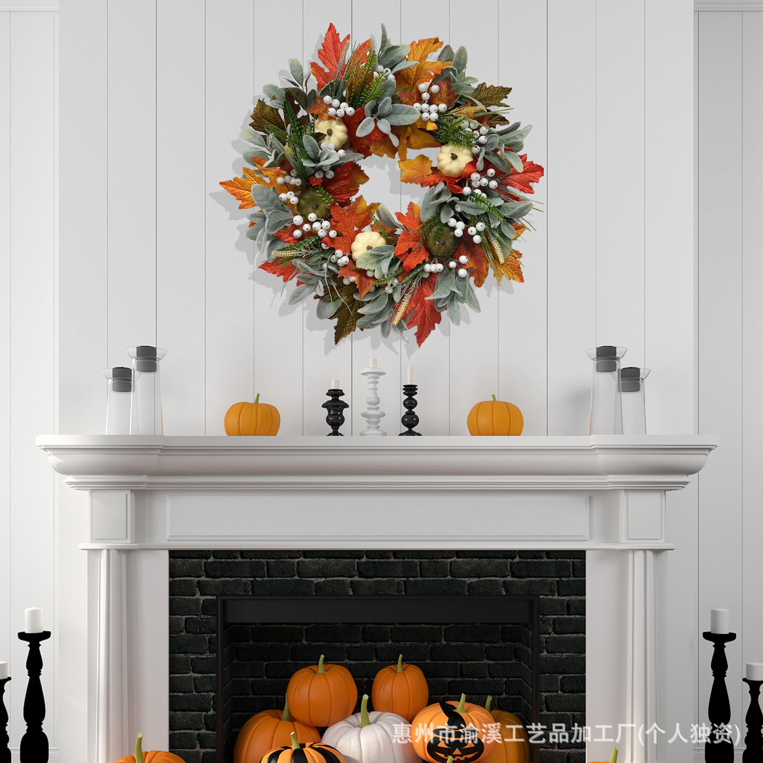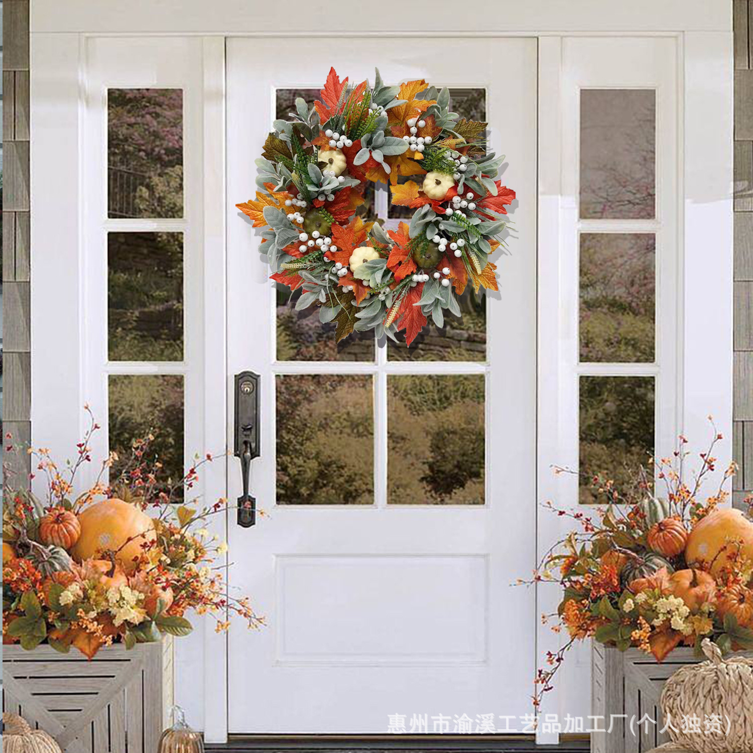 2025新款跨境秋季仿真白南瓜枫叶花环亚马逊感恩节丰收节秋季花环