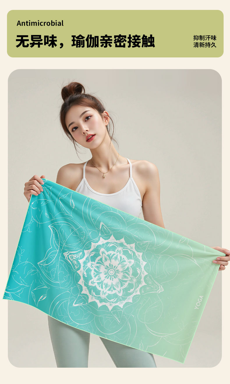 滑り止めシリコン底、肌に優しく抗菌性のあるヨガマット、汗を吸収し、ロゴをシルクスクリーン印刷でカスタマイズ可能な汗拭きマット