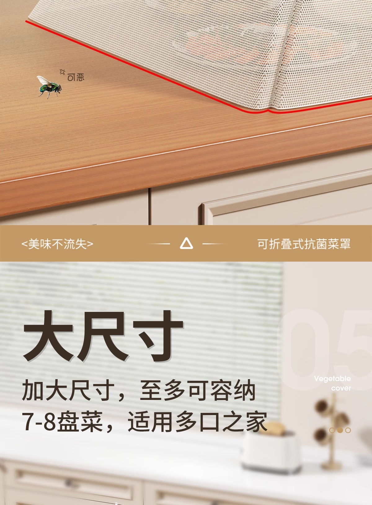 抗菌菜盖罩新款家用饭菜遮尘高级可折叠餐桌防虫网罩菜罩神器