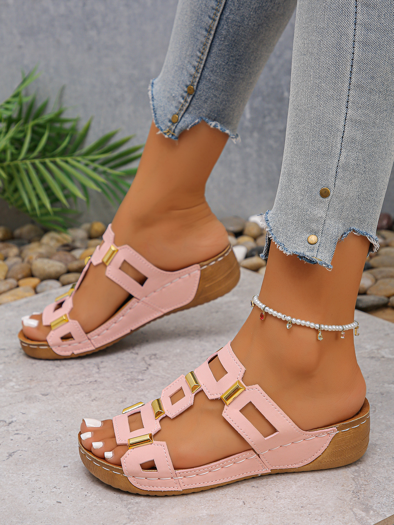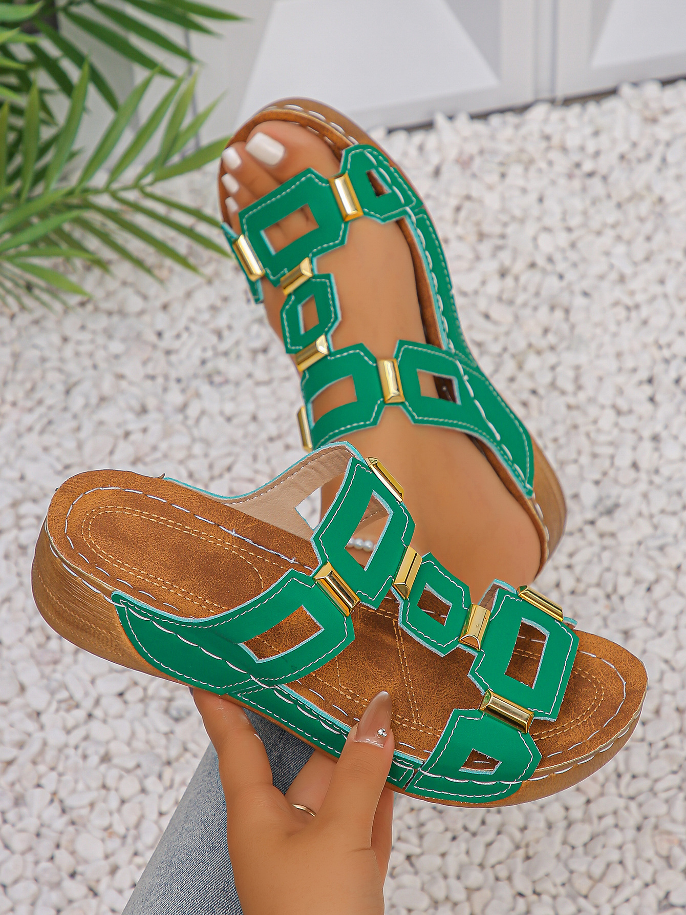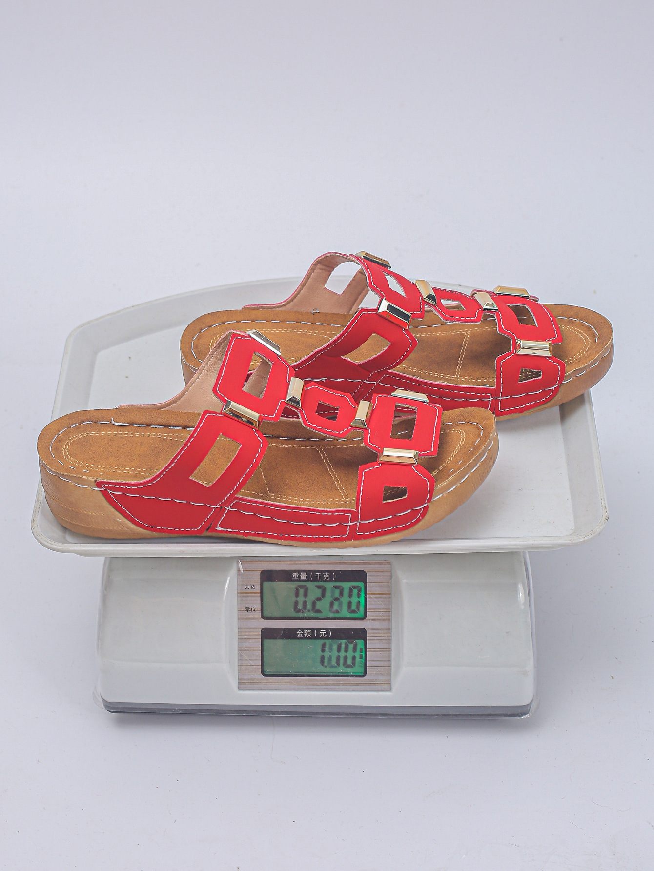 Wedge Slippers 外贸大码坡跟拖鞋女外穿超轻便金属镂空厚底凉拖