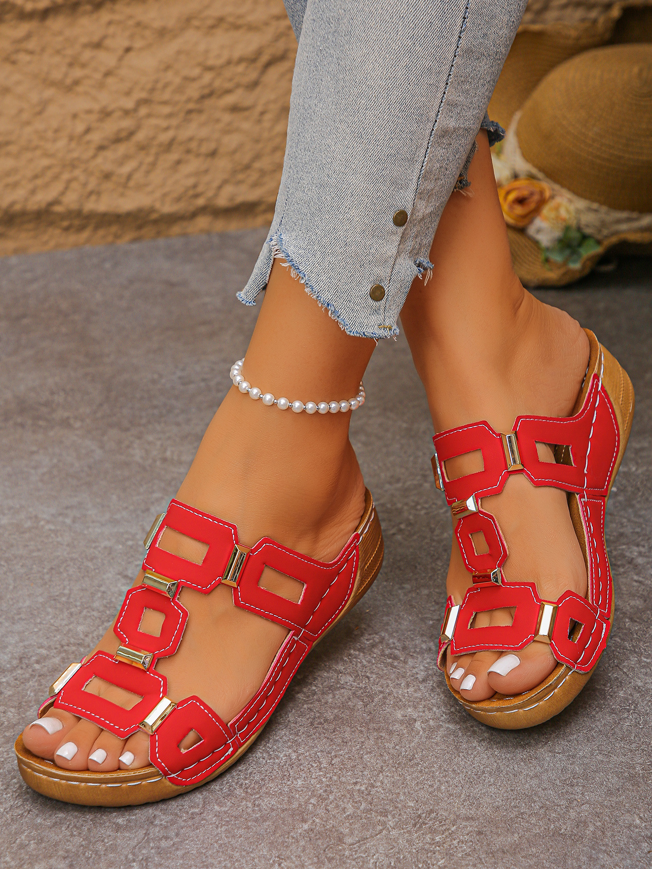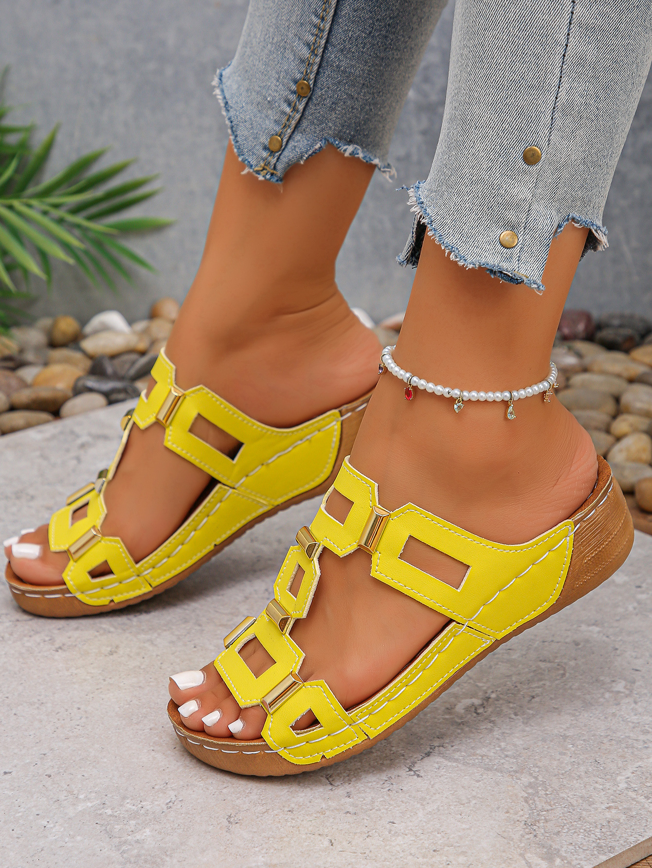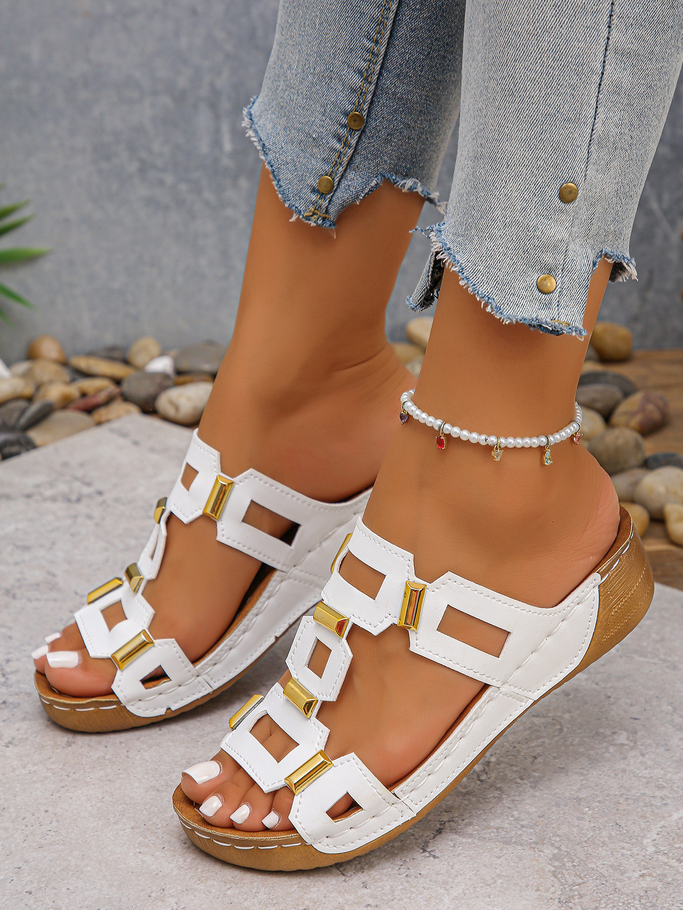 Wedge Slippers 外贸大码坡跟拖鞋女外穿超轻便金属镂空厚底凉拖