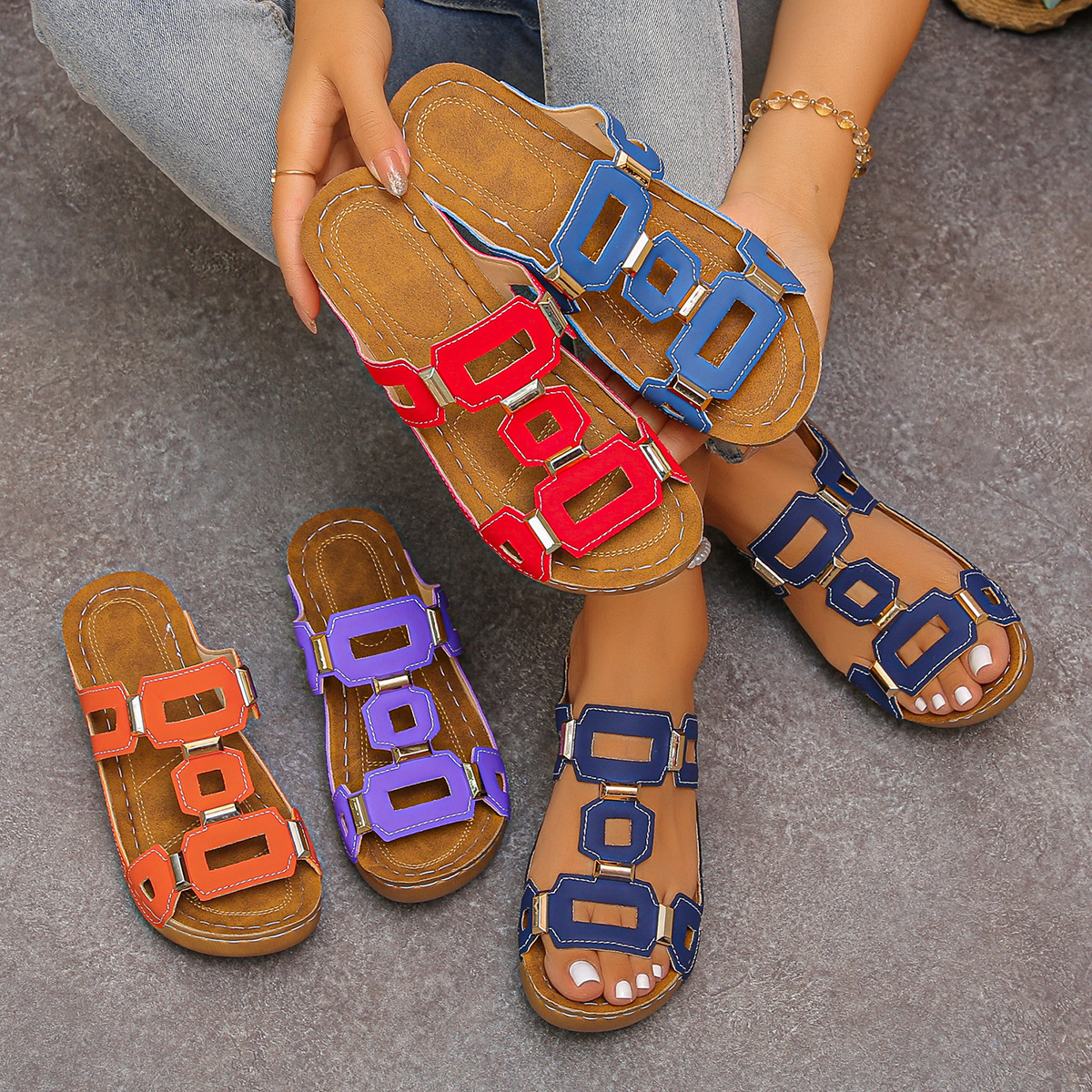 东南亚外贸新款厚底镂空搭扣一字拖鞋女大码轻便坡跟沙滩凉拖ebay