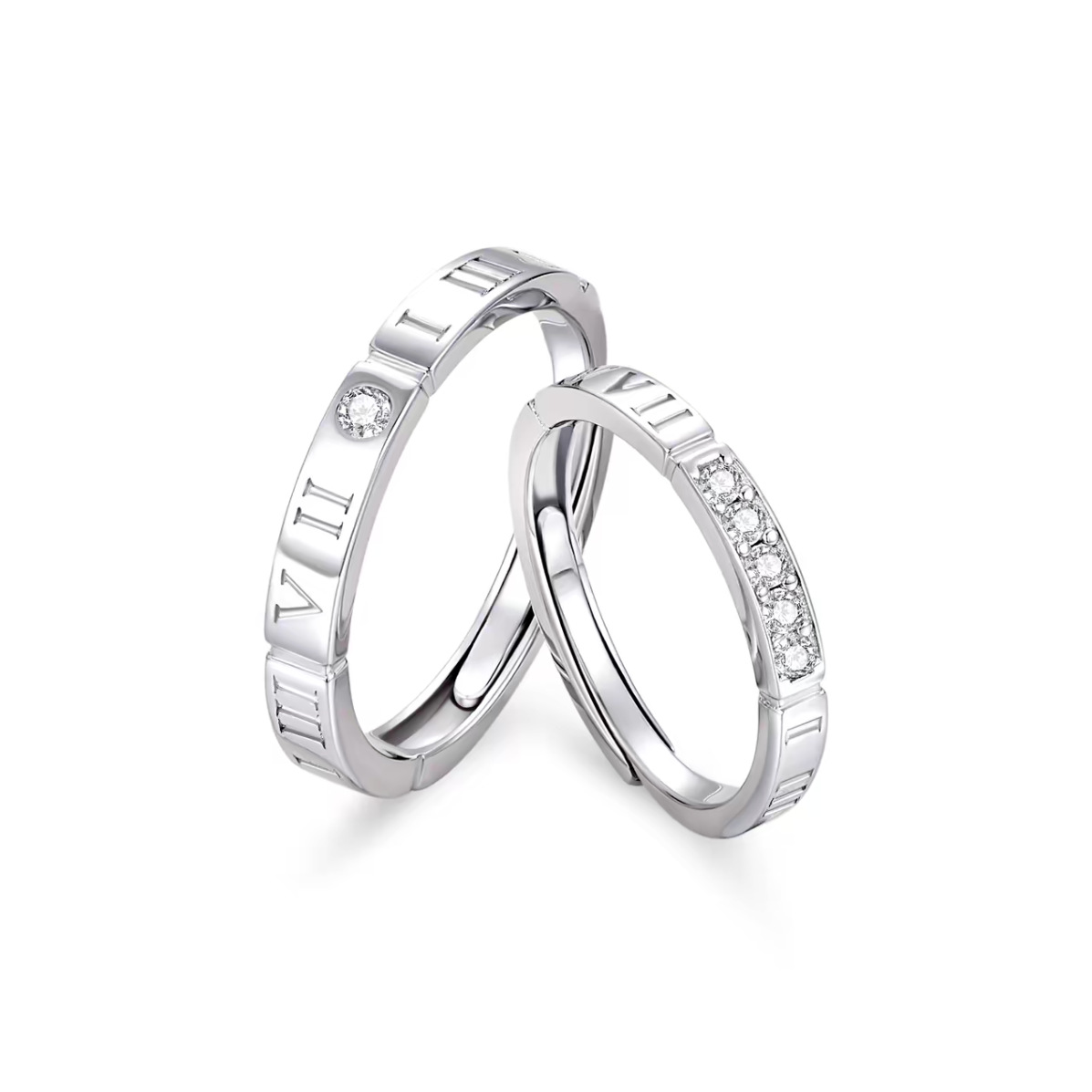 s999纯银时尚罗马数字对戒高级感复古轻奢时光恋人情侣开口戒指