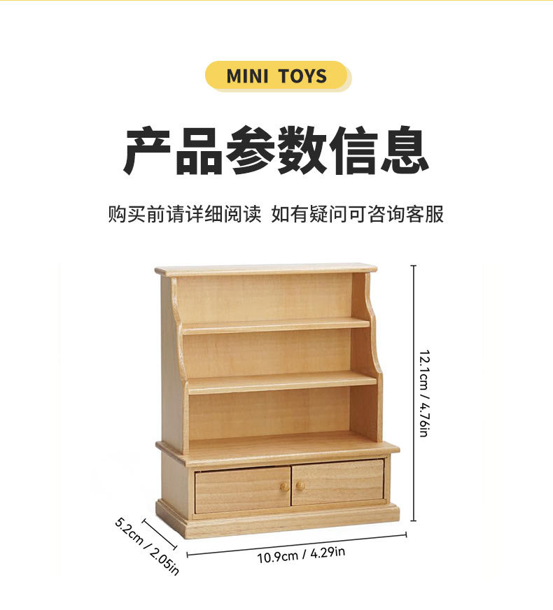 1:12迷你娃娃屋家具OB11书房客厅摆件书柜储存柜置物架微缩场景柜