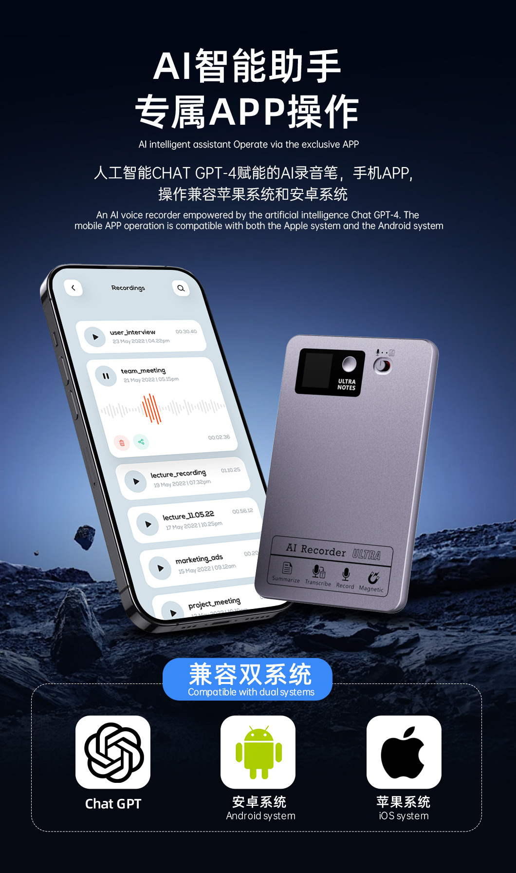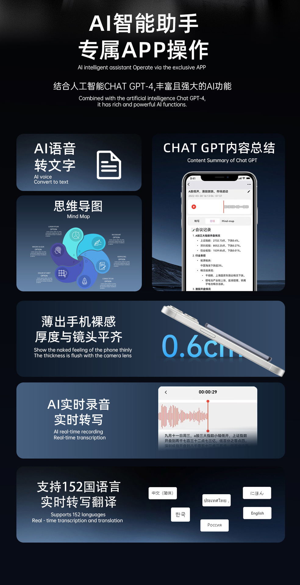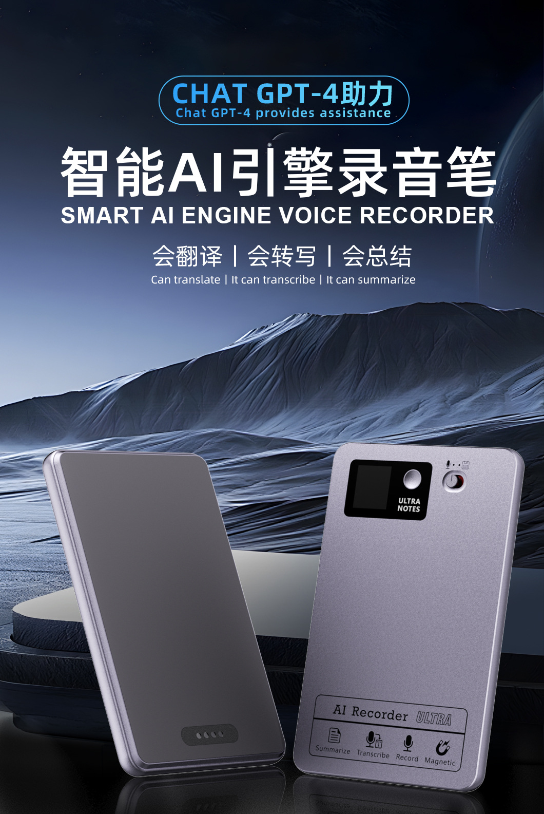 跨境爆款AI卡片录音笔 同声传译自带磁吸智能总结思维导图录音机