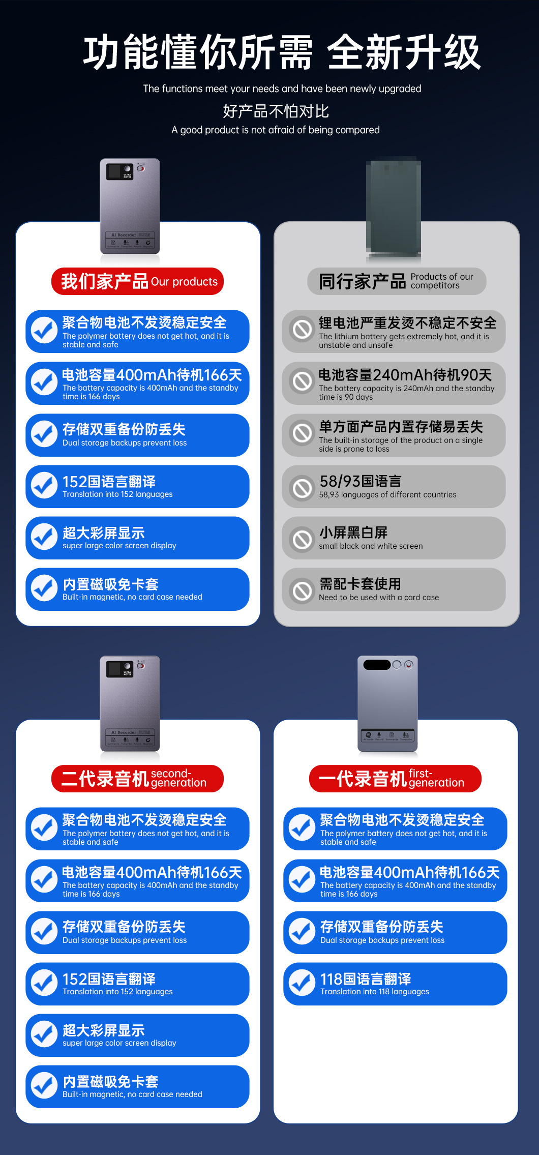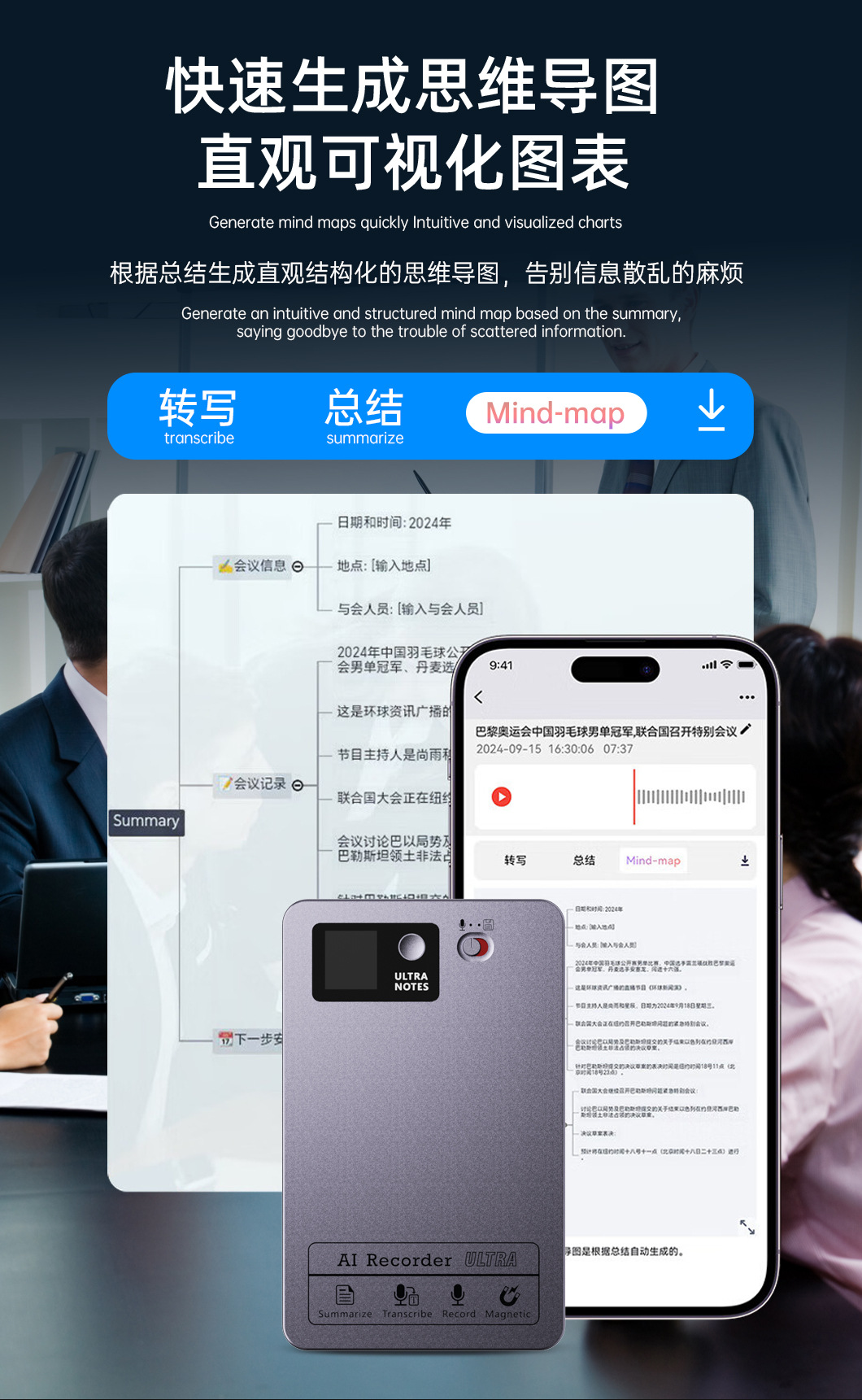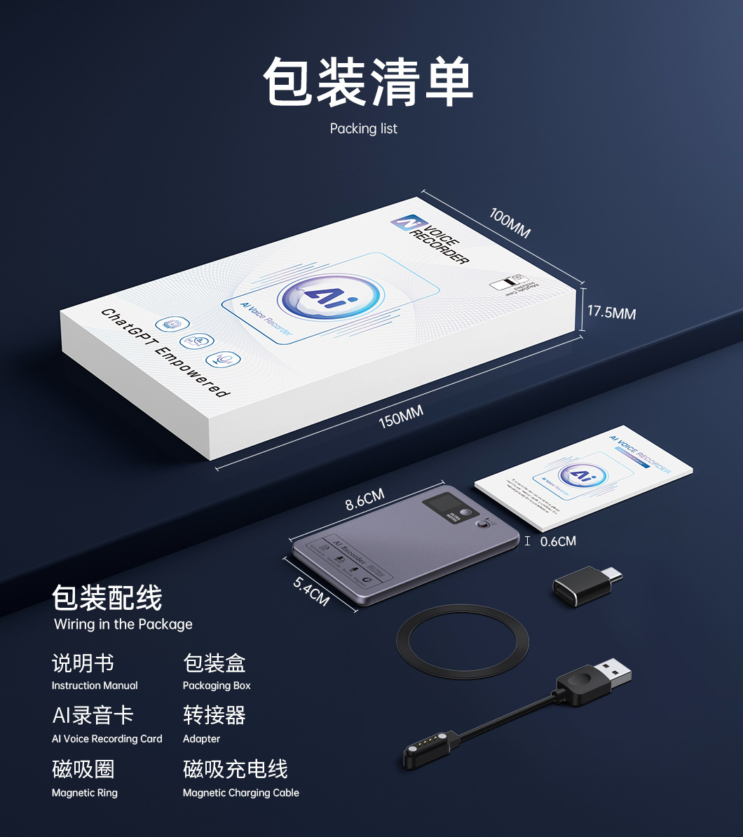 跨境爆款AI卡片录音笔 同声传译自带磁吸智能总结思维导图录音机