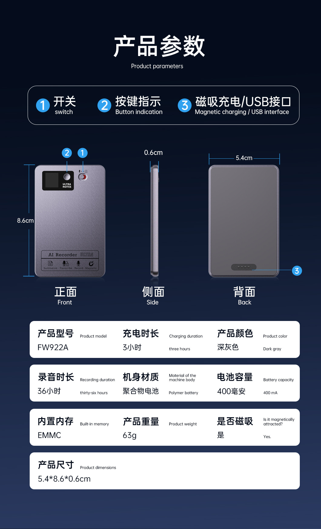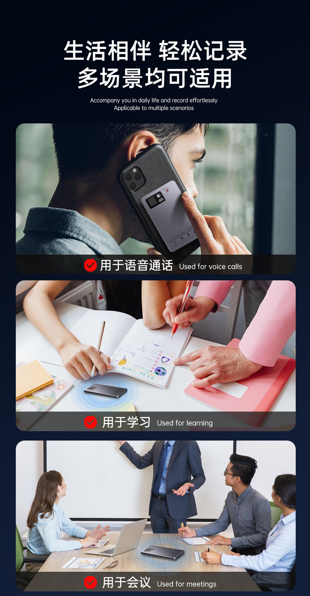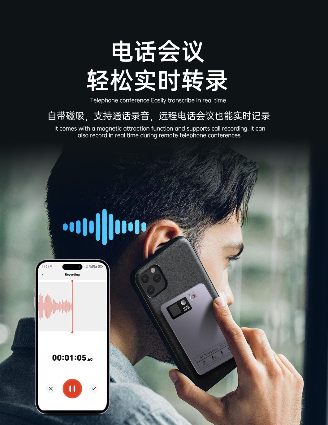 AI智能便携式录音笔通话录音语音转文字磁吸外壳会议讲座采访适用