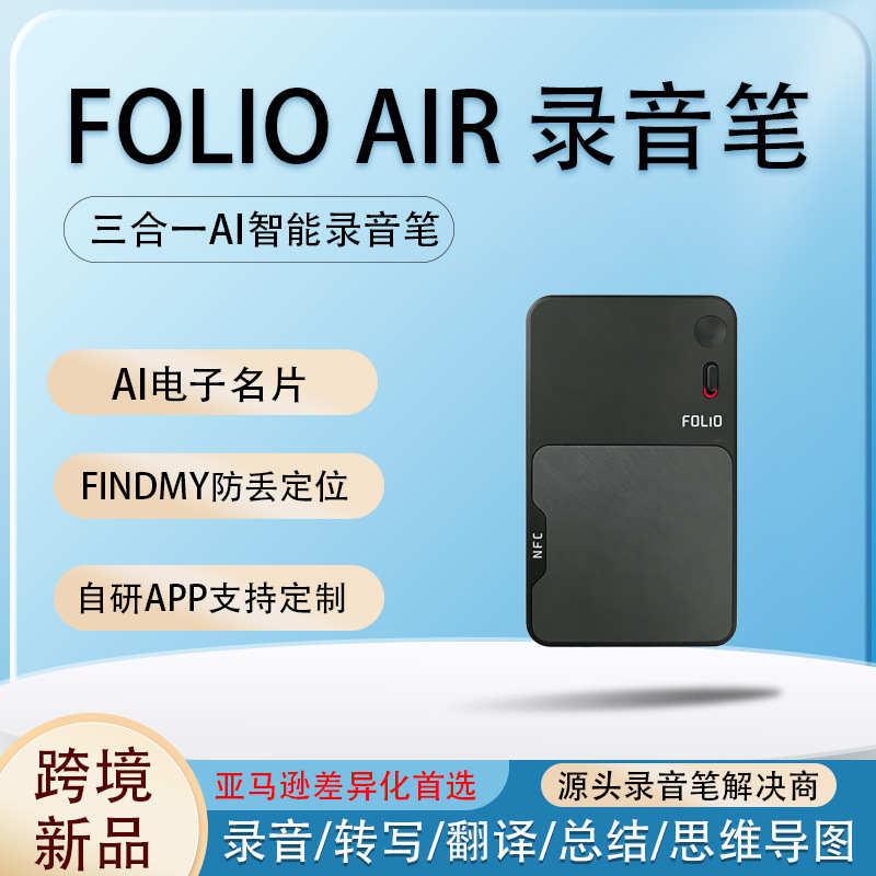 亚马逊智能超薄ai录音笔蓝牙带磁吸会议纪要实时翻译卡片式录音机