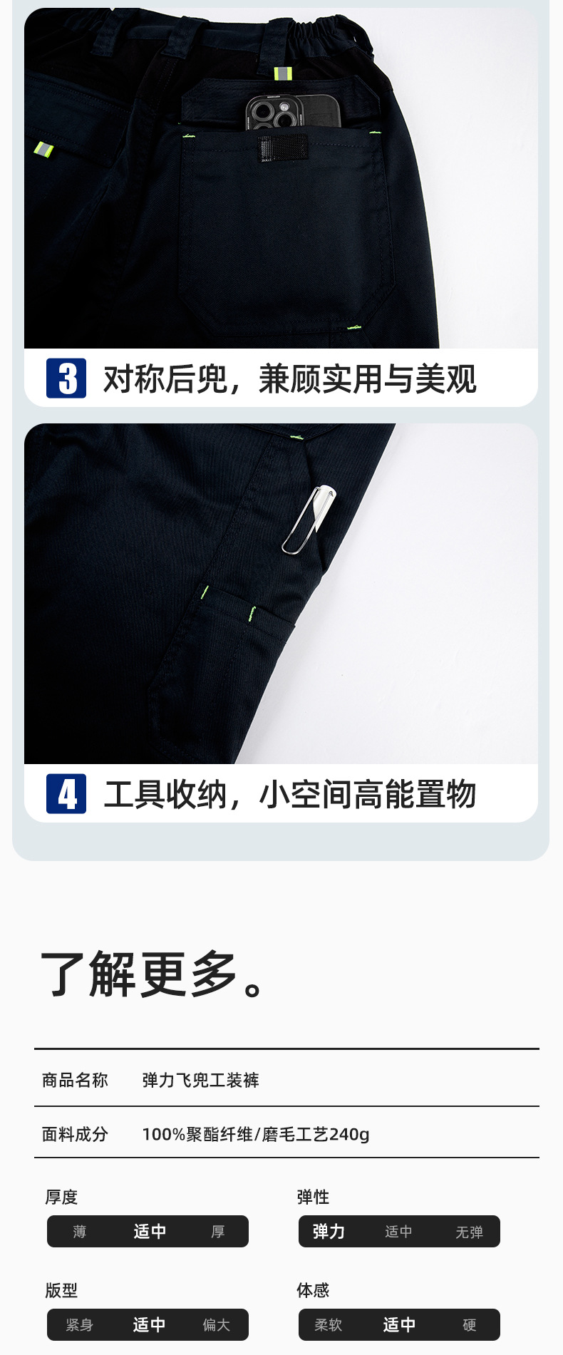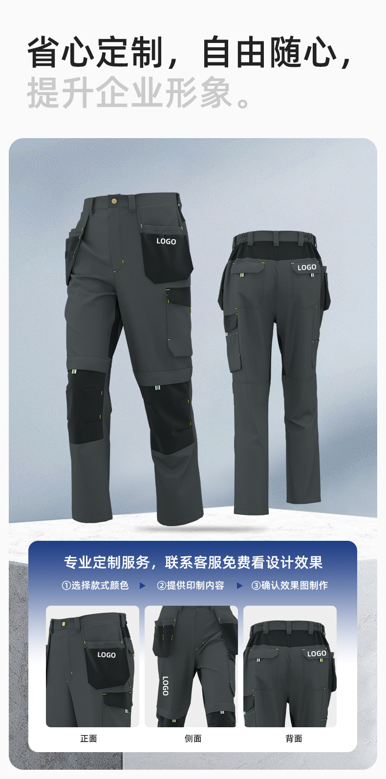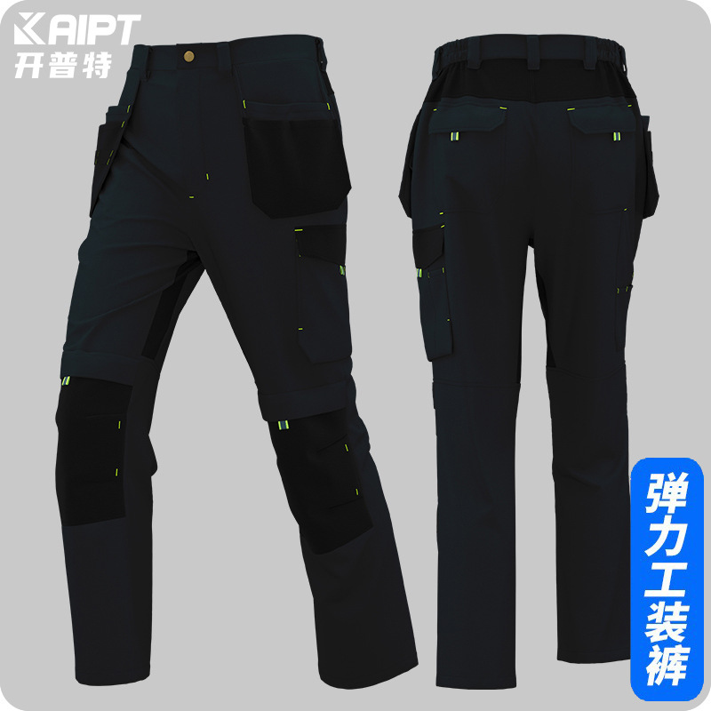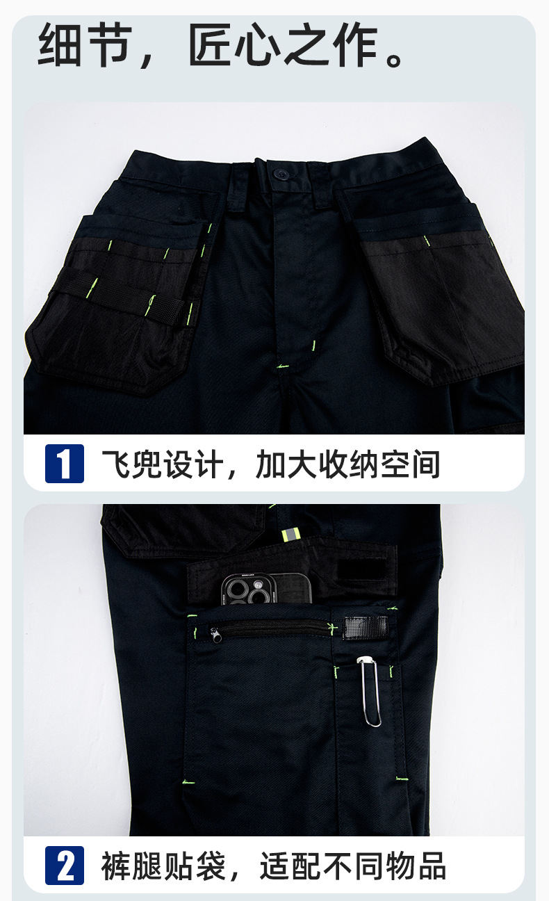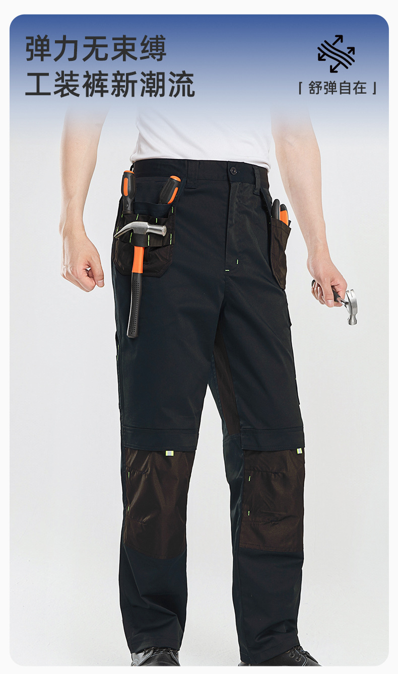 春秋弹力工作裤飞兜裤定制维修工人车间裤子耐磨加固欧码劳保裤