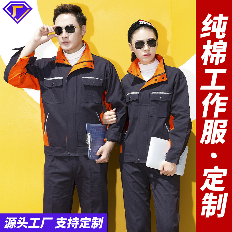 春秋純綿作業服セット男性純綿耐摩耗長袖電気溶接工場工場服労働服労働保護服カスタマイズ