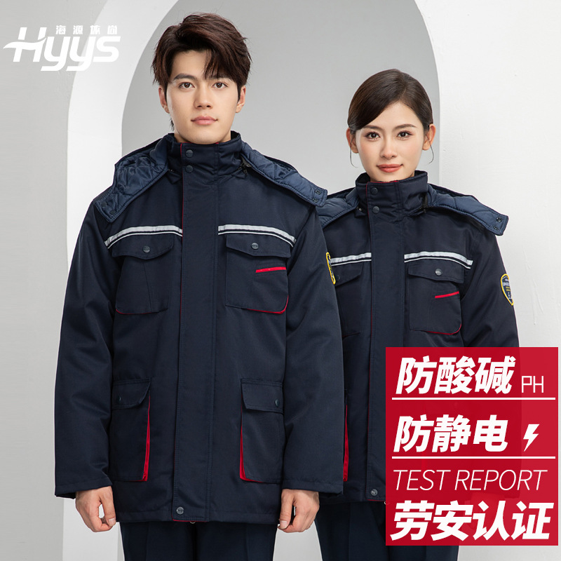 冬の酸防止アルカリ静電気防止作業服綿服を厚くして保温綿コート化学工場で労働保険服をカスタマイズする