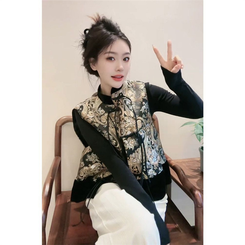 2025 早春の新しい中国風ジャカードベスト女性のライトナショナルスタイルベスト気質多用途小さなベスト春カーディガン