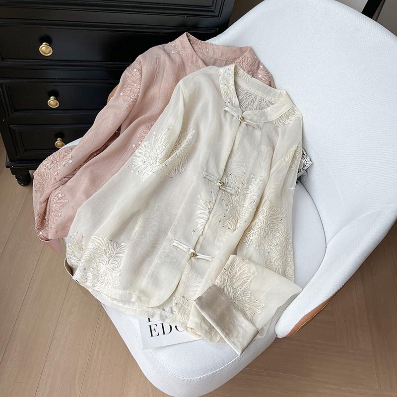 春夏2025新型国風立襟刺繍コート女性ファッション気質新中国式長袖薄い上着女性