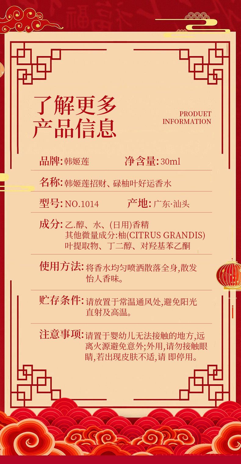 产品名称 招财碌柚叶好运香水(韩姬莲)