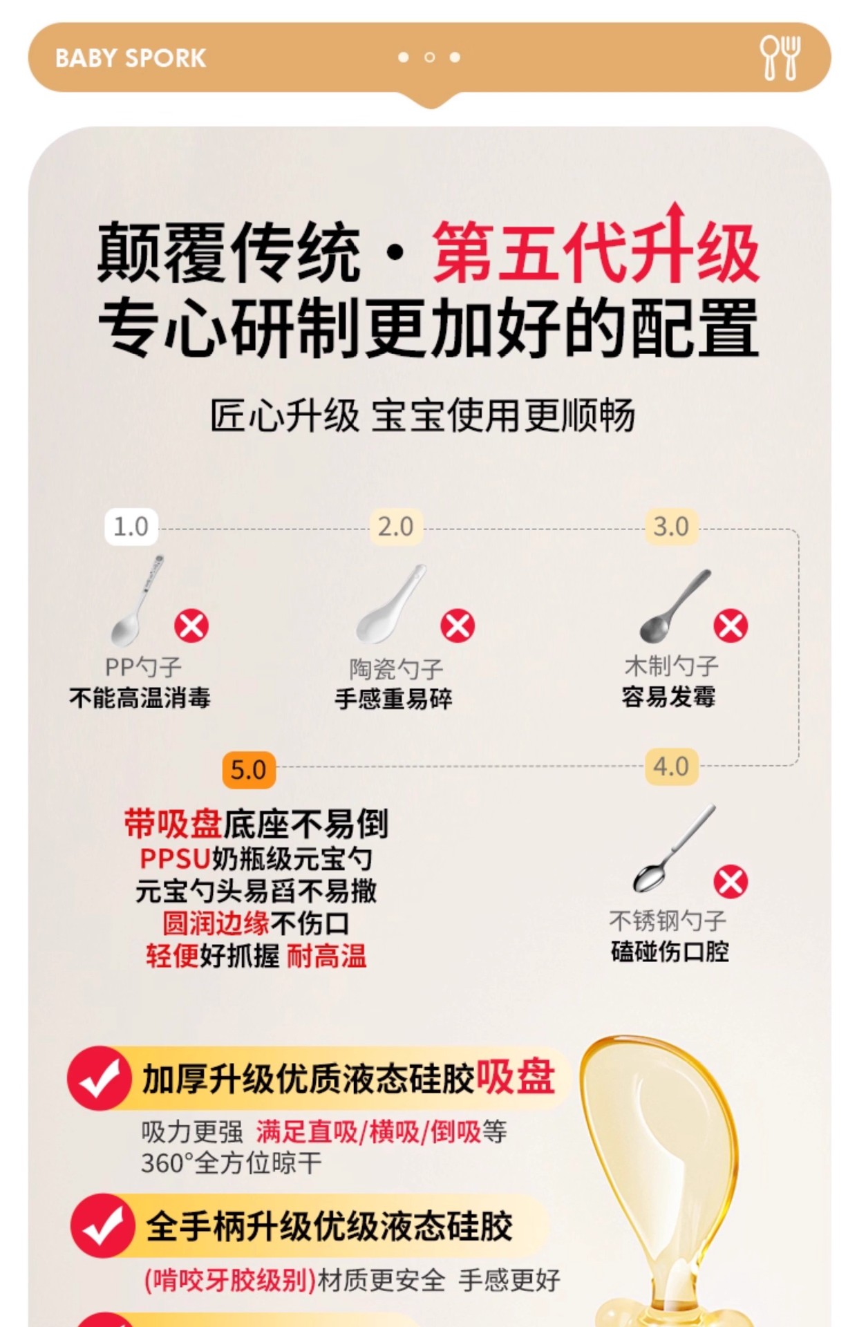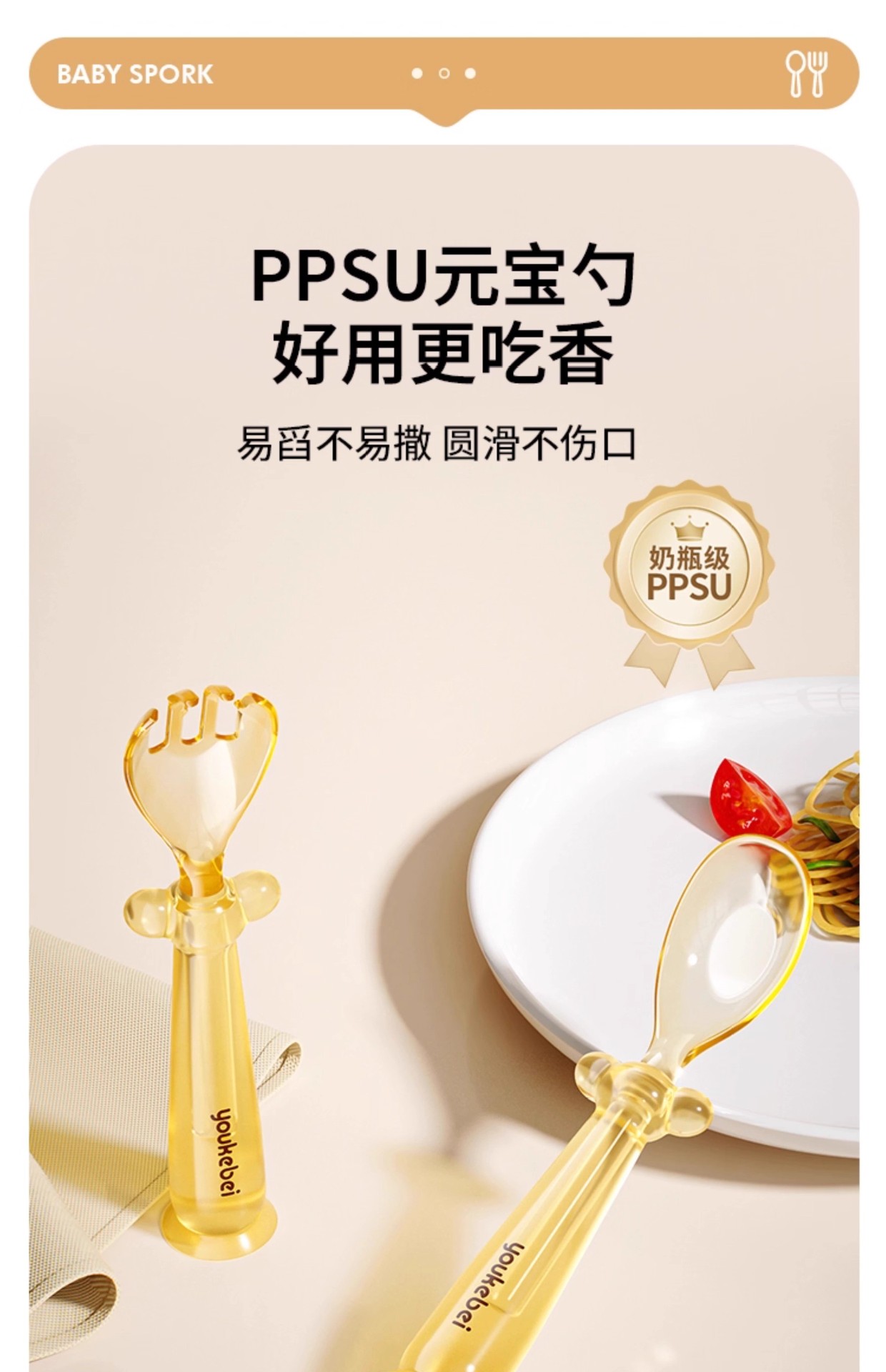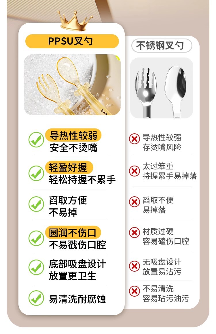 PPSU元宝训练勺婴儿防滑叉勺6M+自主进食学吃饭餐具厂批源头