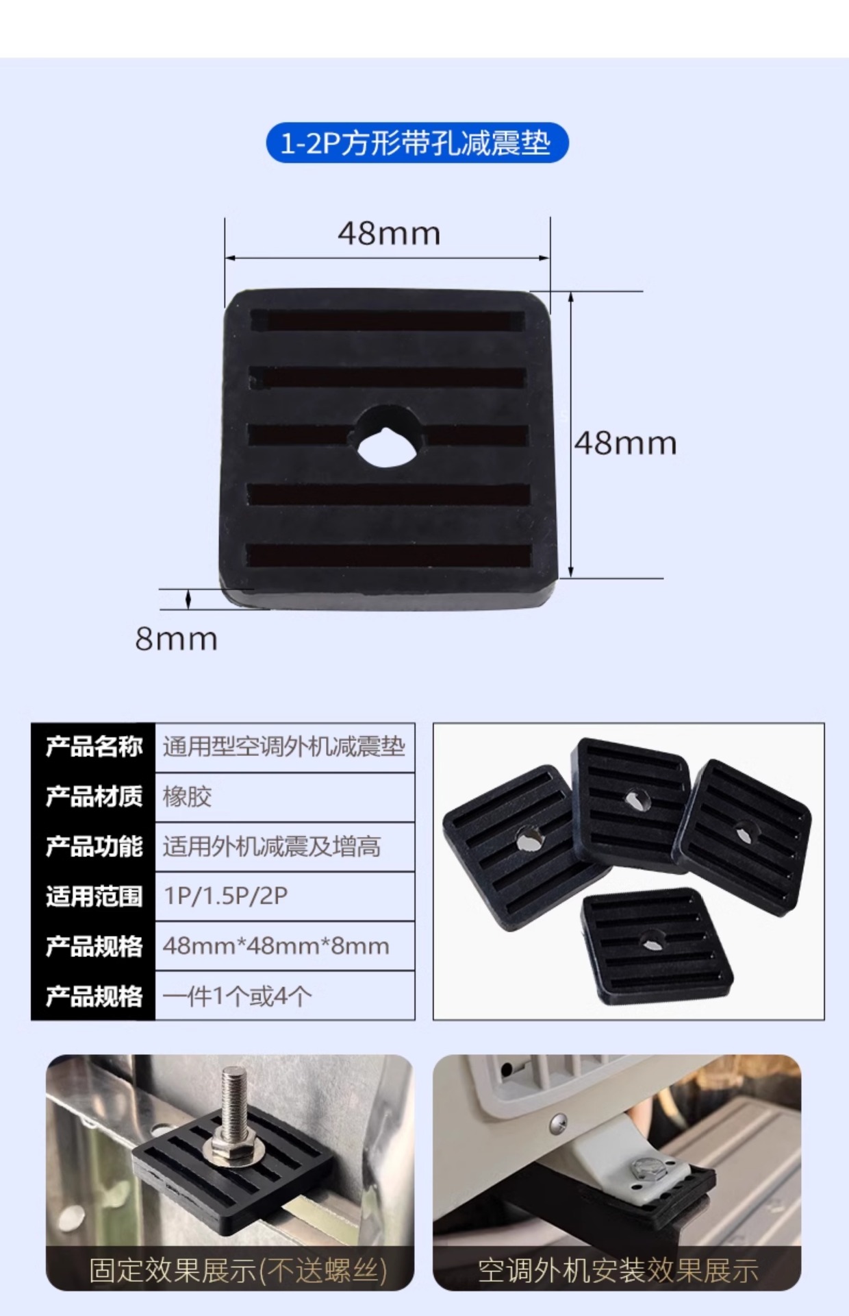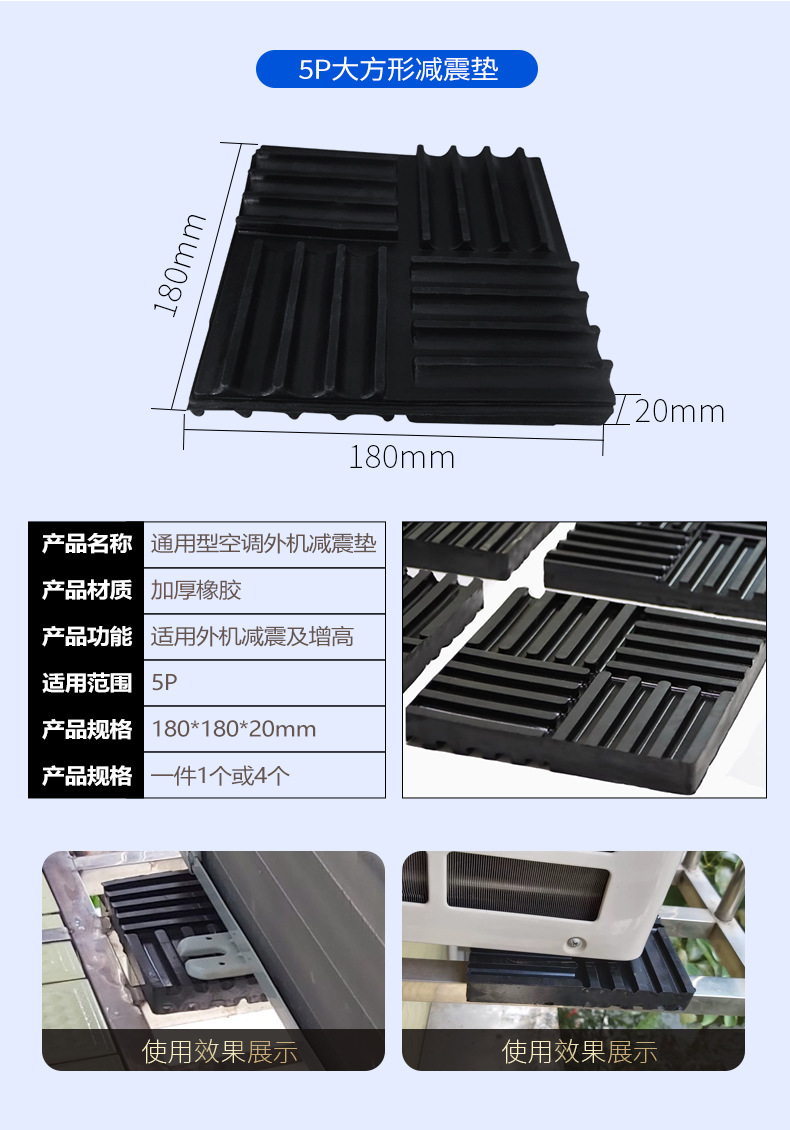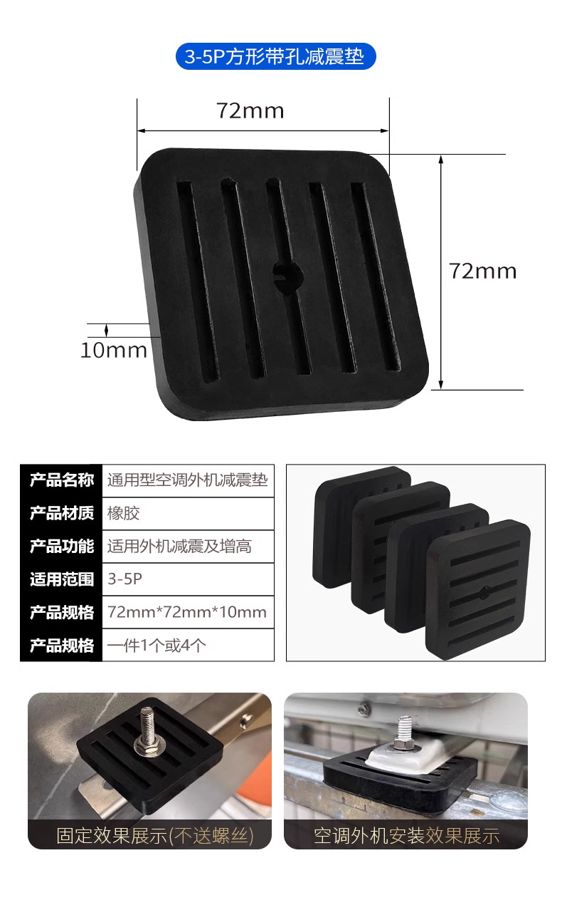 颜色 元宝型减震垫*4+8个螺丝,方形减震垫3-5P*4片,方形减震垫1-2P*4片,元宝型减震垫*4,方型减震垫5p*4片,方型减震垫5p*1片