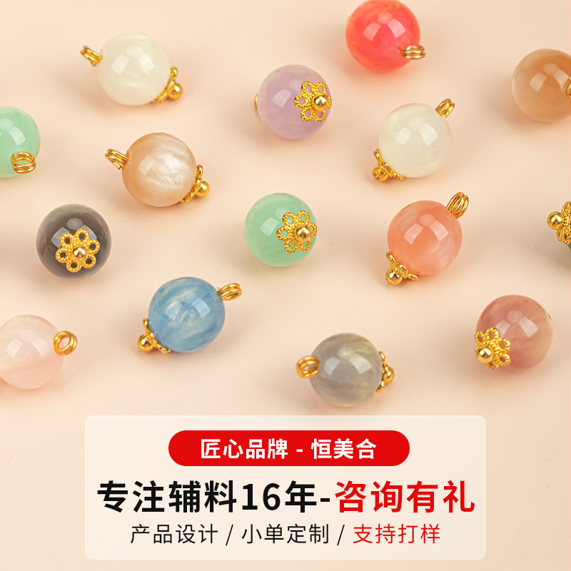 菩提猫爪小提溜仿玉琉璃莲花diy手链小手挂醒狮吊坠手工压襟配件