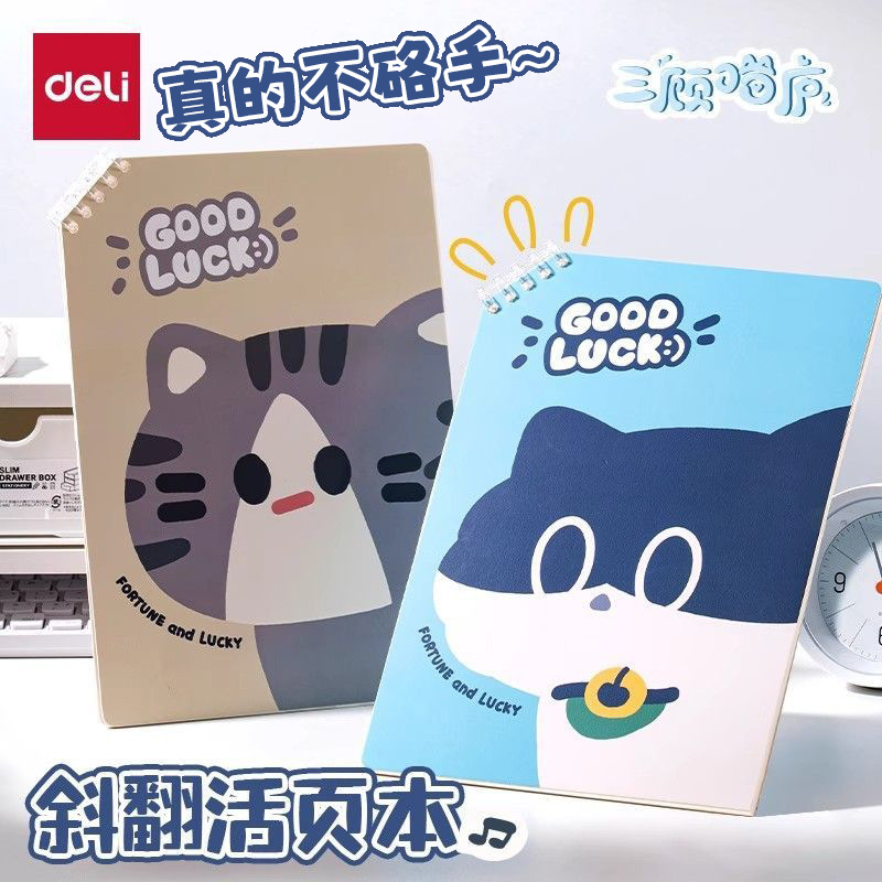 得力斜翻活页本高颜值学生笔记本本子不硌手记事本日记本学生文具