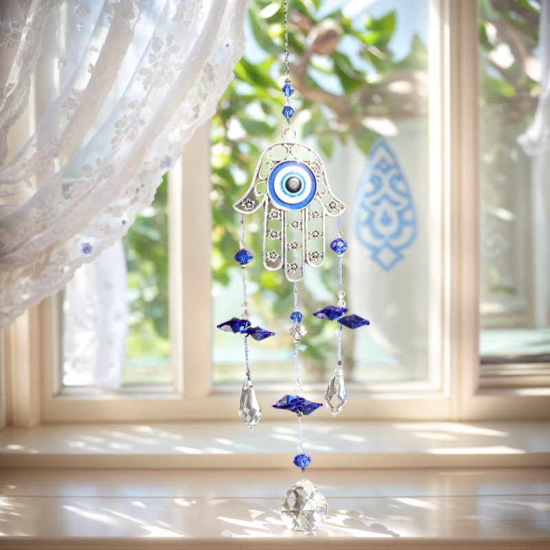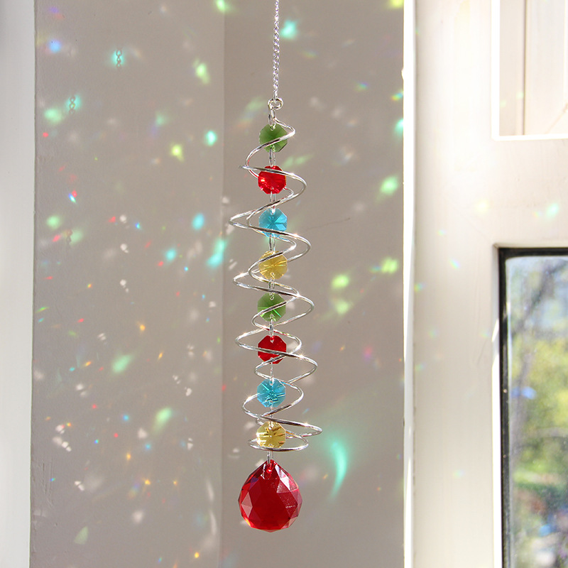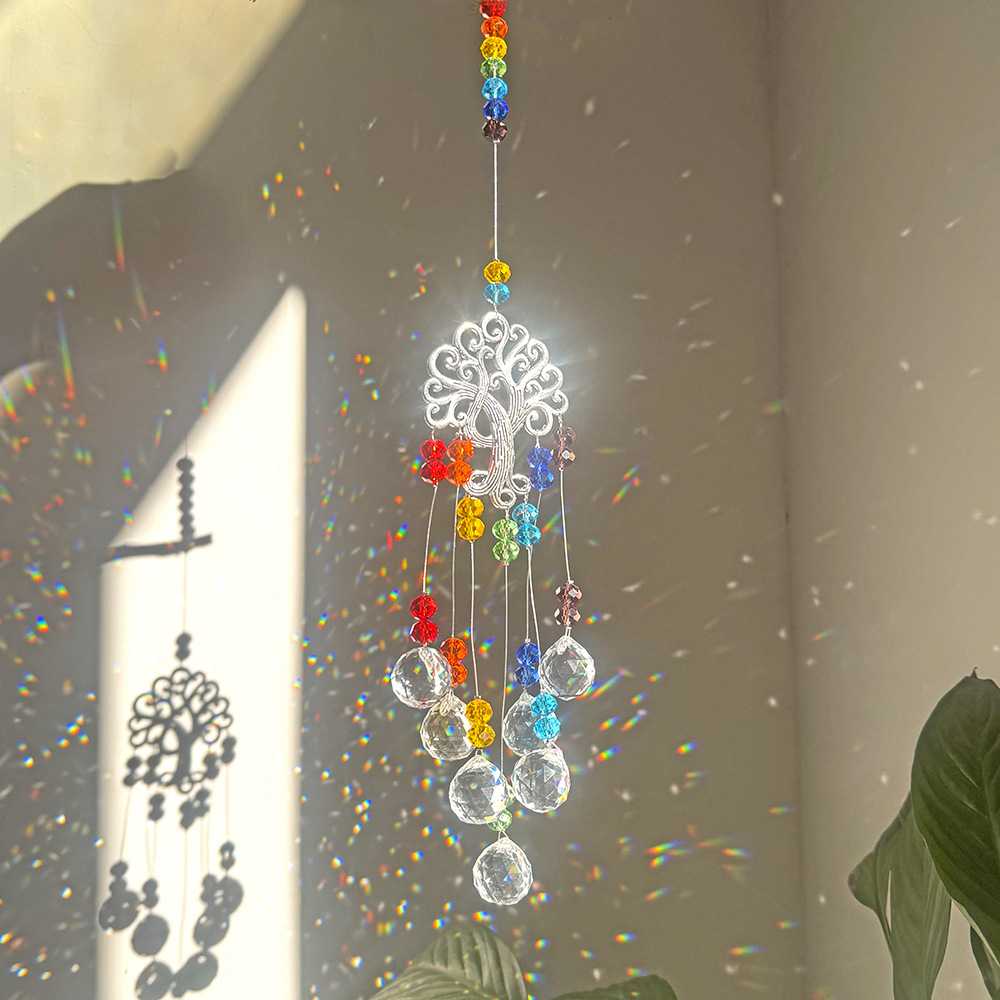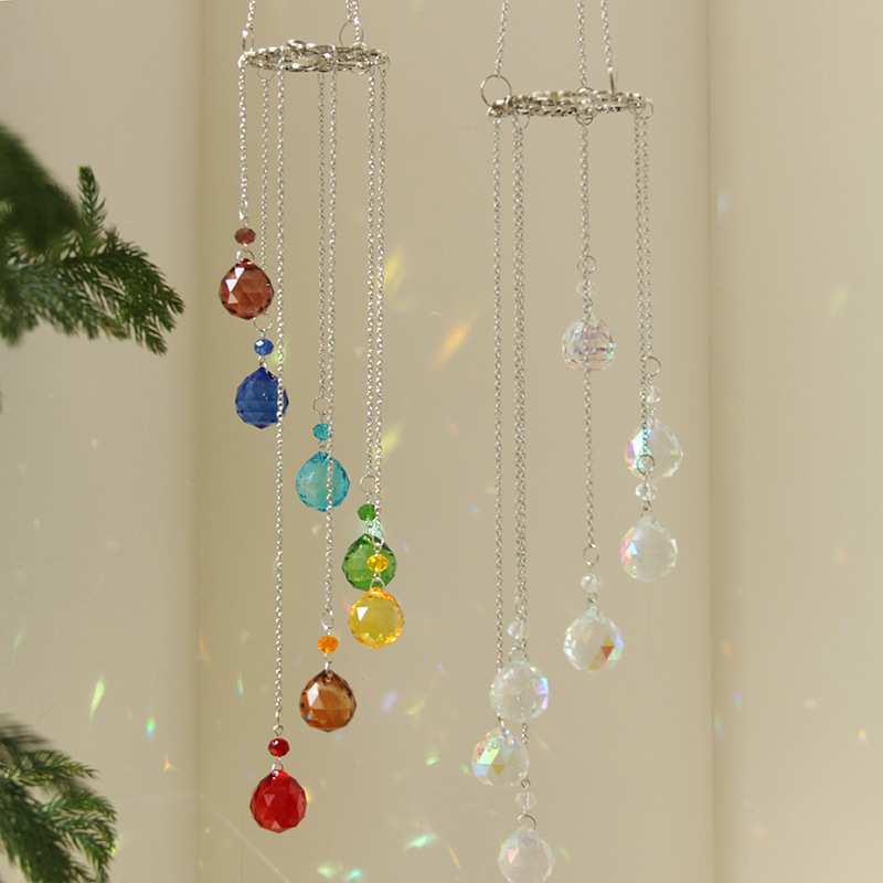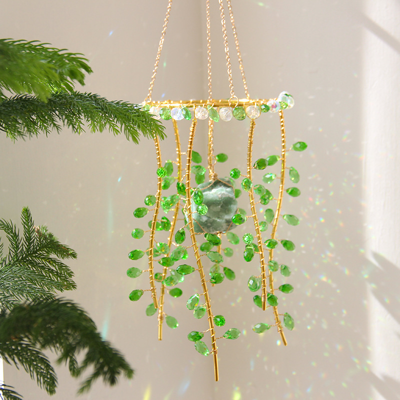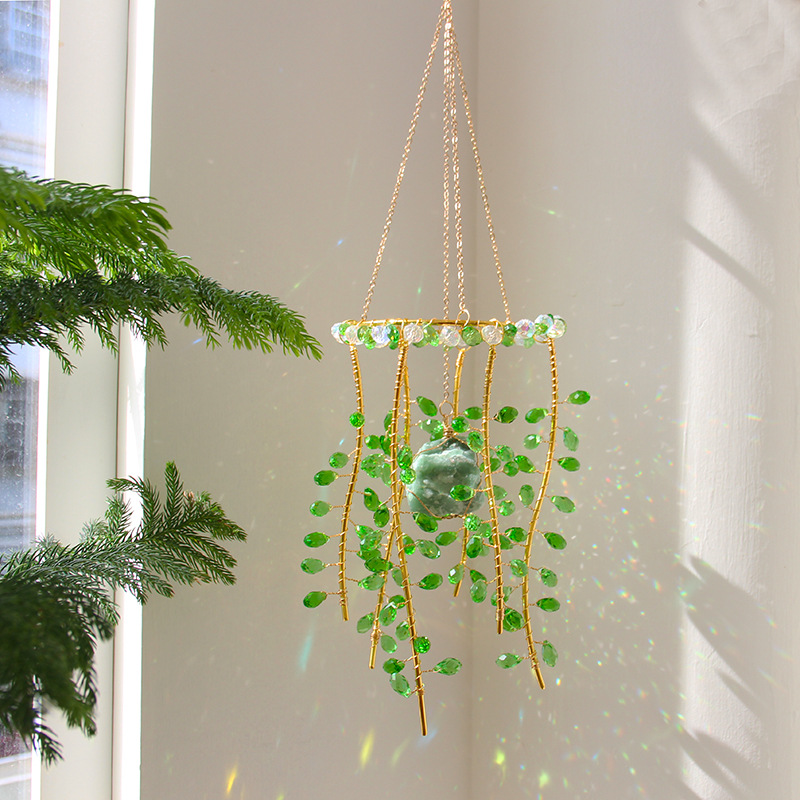 跨境批发天然碎石水晶月亮手工缠绕diy太阳捕手光影风铃水晶挂件