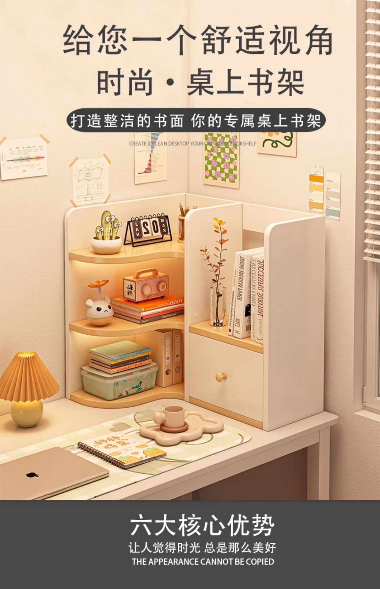 桌面书架桌上转角置物架办公工位改造小书柜学生宿舍书桌收纳架子