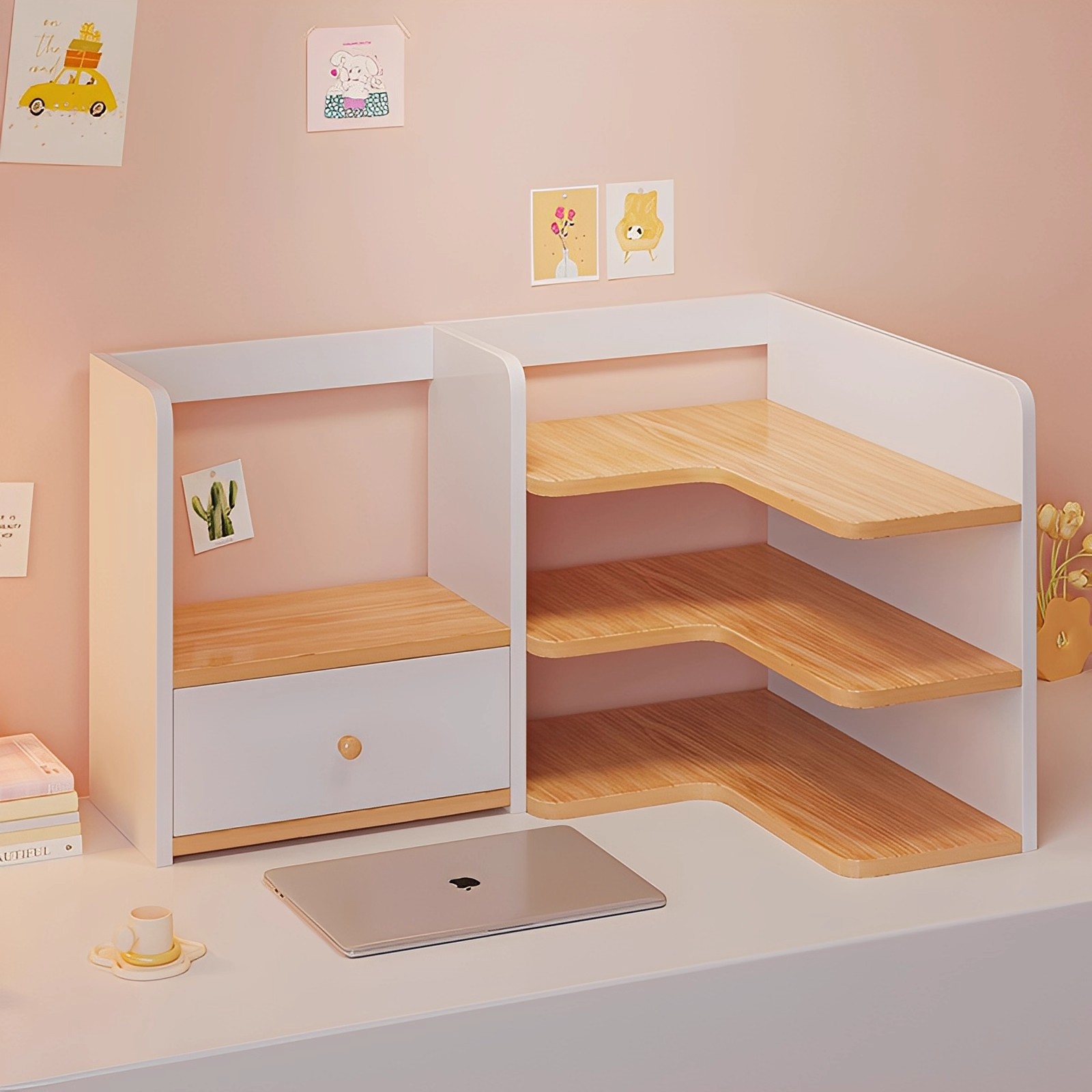 桌面转角置物架多层工位女生宿舍书桌文具杯子化妆品抽屉式收纳柜