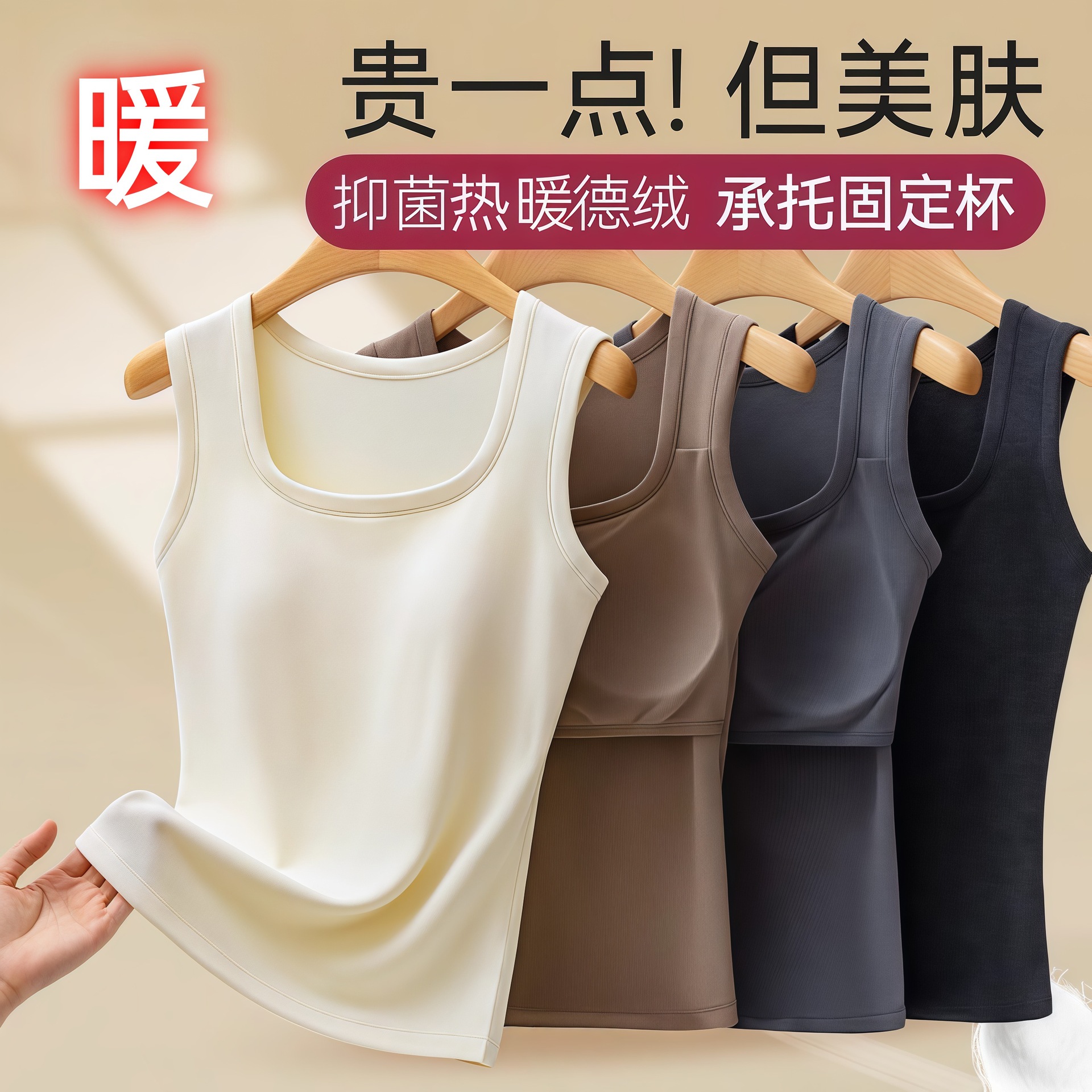 德绒保暖吊带背心带胸垫女秋冬内搭加绒加厚新款可外穿打底上衣女