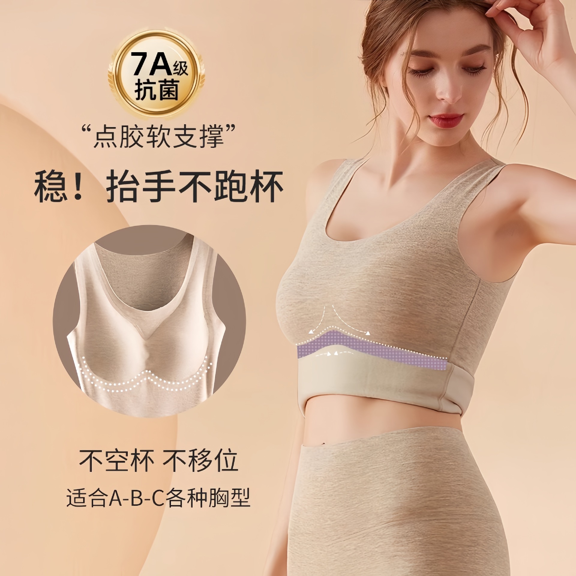 羊绒蚕丝保暖背心带胸垫女士内搭秋冬季保暖上衣打底衫肌底内衣女