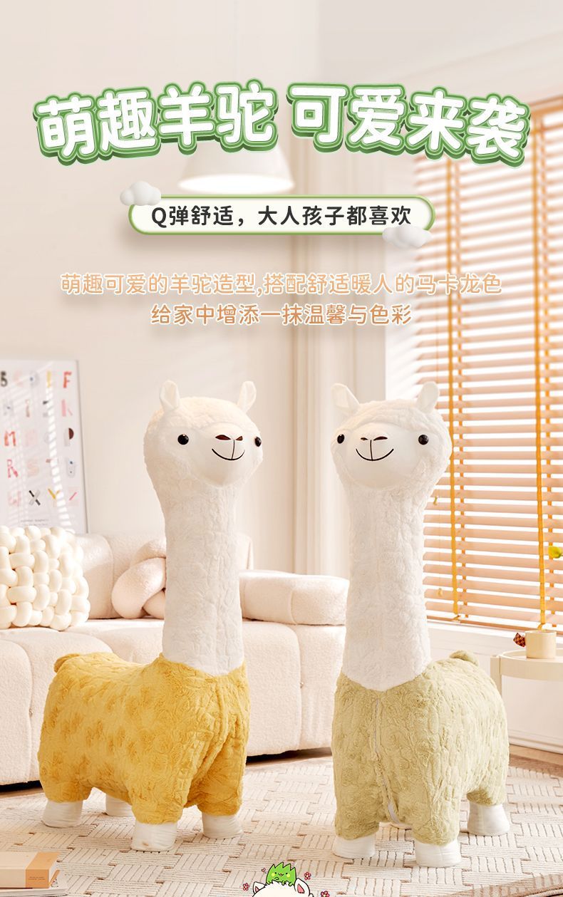 网红创意大号羊驼凳子客厅落地摆件毛绒落地摆件毛绒动物座椅