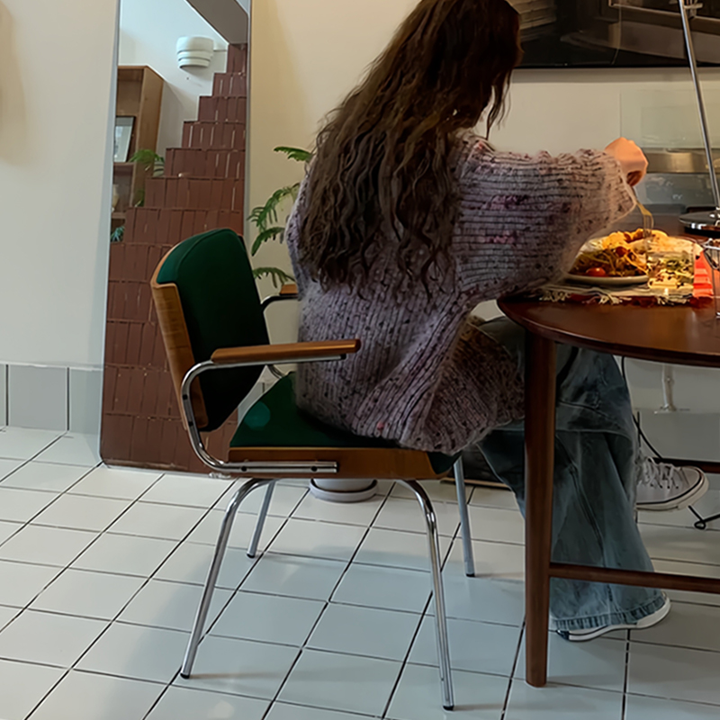 柏林餐椅复古风实木软包椅子休闲沙发椅书房卧室化妆扶手电脑椅子